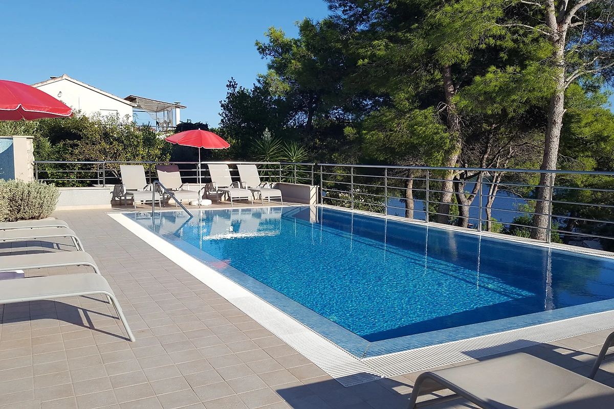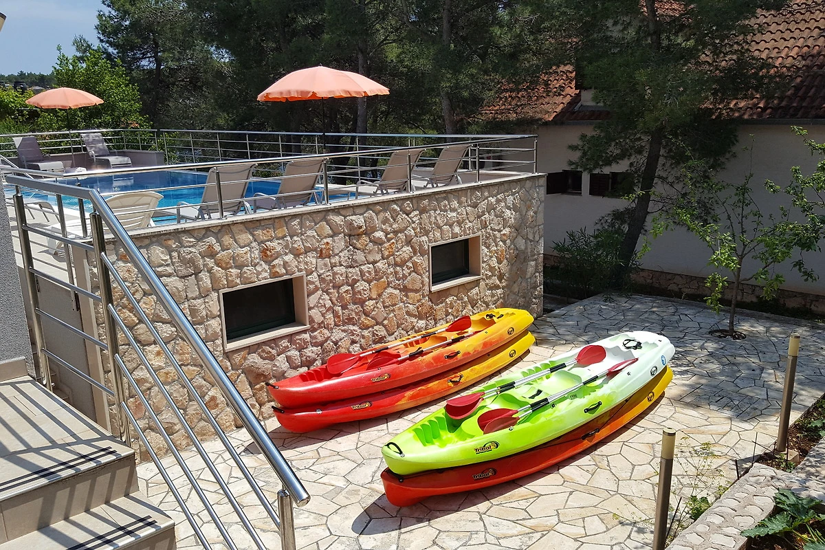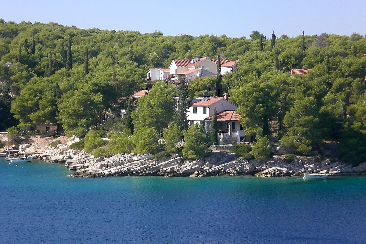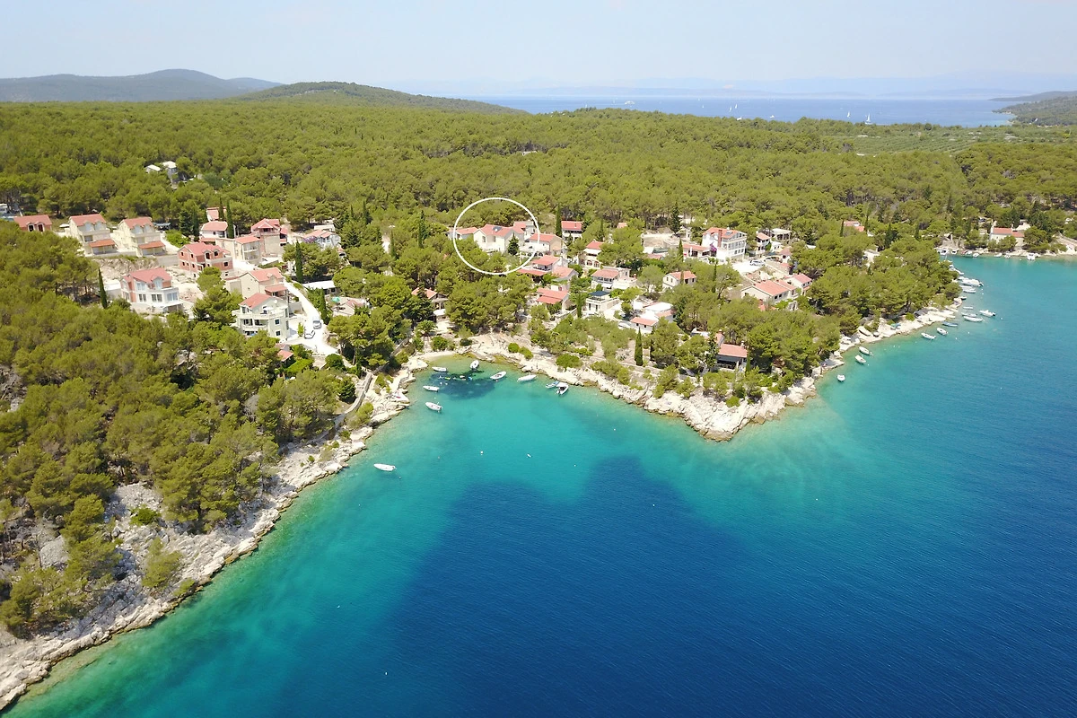 Die freistehende Ferienvilla hat einen beheizten Privatpool und befindet sich in der ruhigen und kristallklaren Osibova Bucht, nur 30 m von einem kleinen Kiesstrand entfernt. Zum Haus gehören 4 Kajaks und 8 Fahrräder. Im 2 km entfernten Ort Milna findet man alles, was man braucht. Auf dem Weg dorthin befinden sich öffentliche Sportplätze (Tennis, Fußball, Basketball und Beachvolleyball), die genutzt werden können.