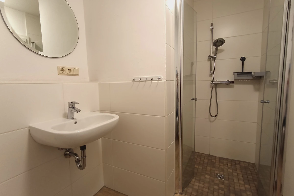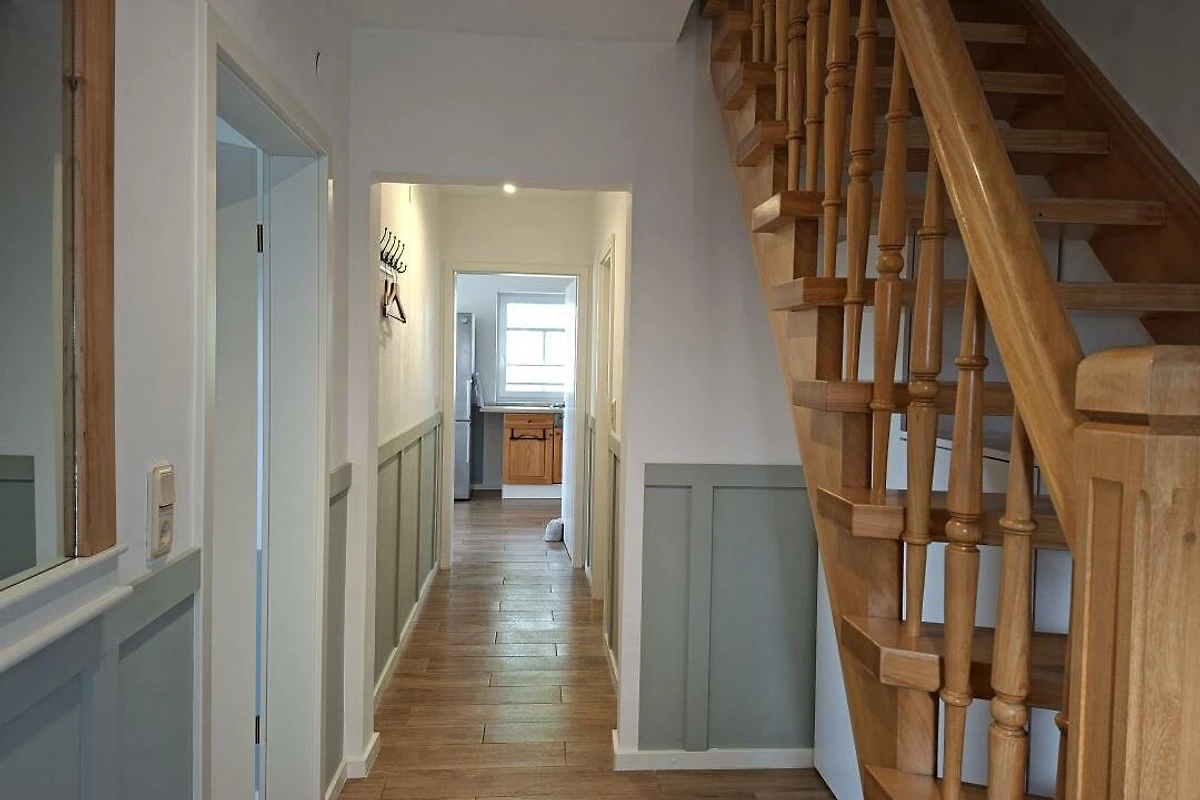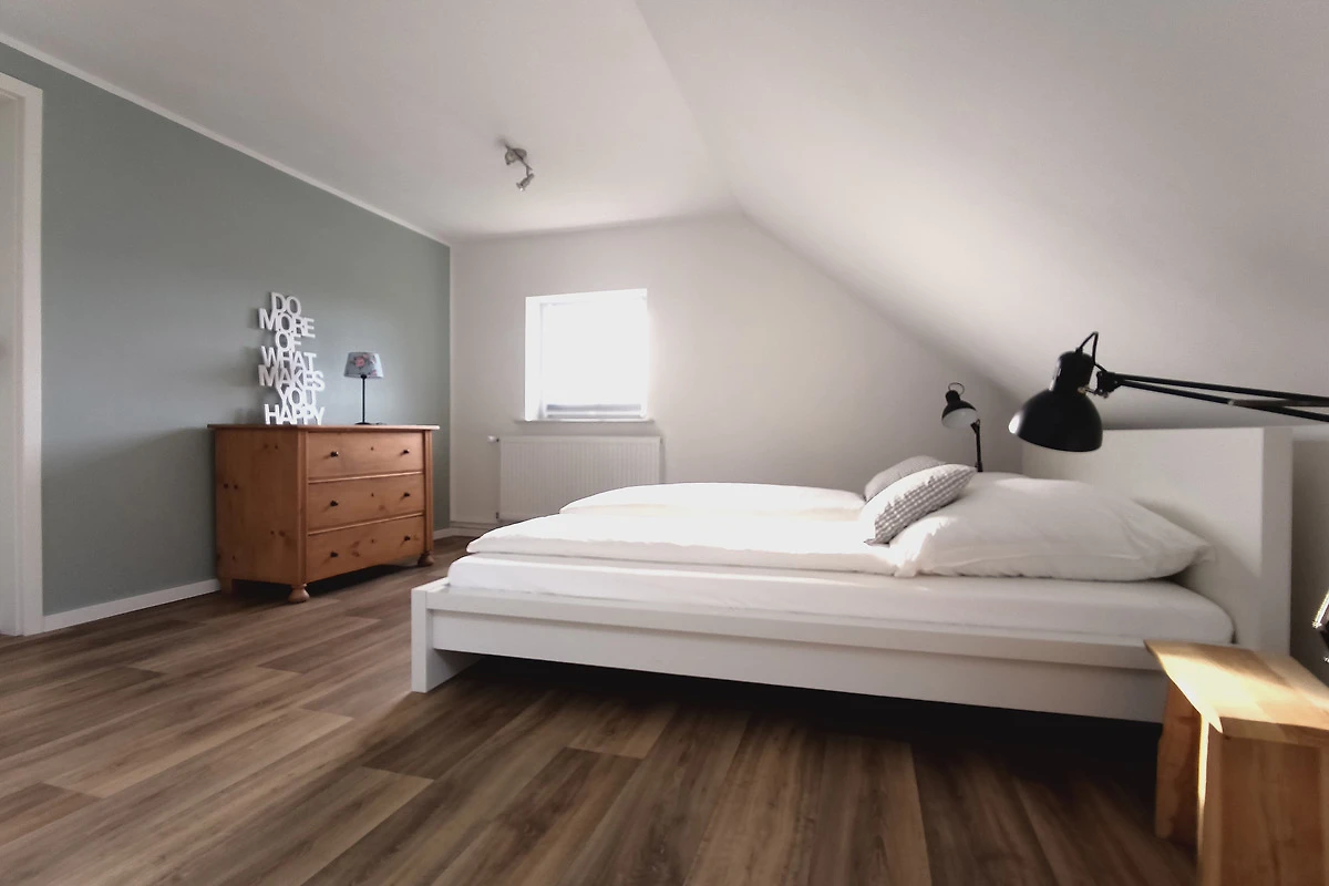 Im Untergeschoss der Ferienwohnung befindet sich eine grosse helle Wohnküche. Die Küche verfügt über einen Backofen mit Ceranfeld und einer Spülmaschine. Ausserdem steht Ihnen eine grosse Kühl-Gefrierkombination zur Verfügung. Finden Sie Platz am gemütlichen Esstisch für vier Personen. Der Wohnbereich bietet ausserdem eine übereck stehende Couch, einen TV und einen Sessel zum Entspannen oder auch gemütlichem Lesen. Im Erdgeschoss befindet sich ein Badezimmer mit ebenerdiger Dusche, ein Schlafzimmer mit einem Bett 1,40m breite. Im Obergeschoss erwartet Sie ein grosszügiges Schlafzimmer mit einem Doppelbett 1,80m breite. Die Bettwäsche und Handtücher sind bereits im Mietpreis enthalten. Bei längeren Aufenthalt werden die Handtücher wöchentlich gewechselt. Auch eine E-Ladestation für Ihr Elektroauto steht am Haus zur Verfügung. Der Kurbeitrag ist bei Anreise in bar zu entrichten.