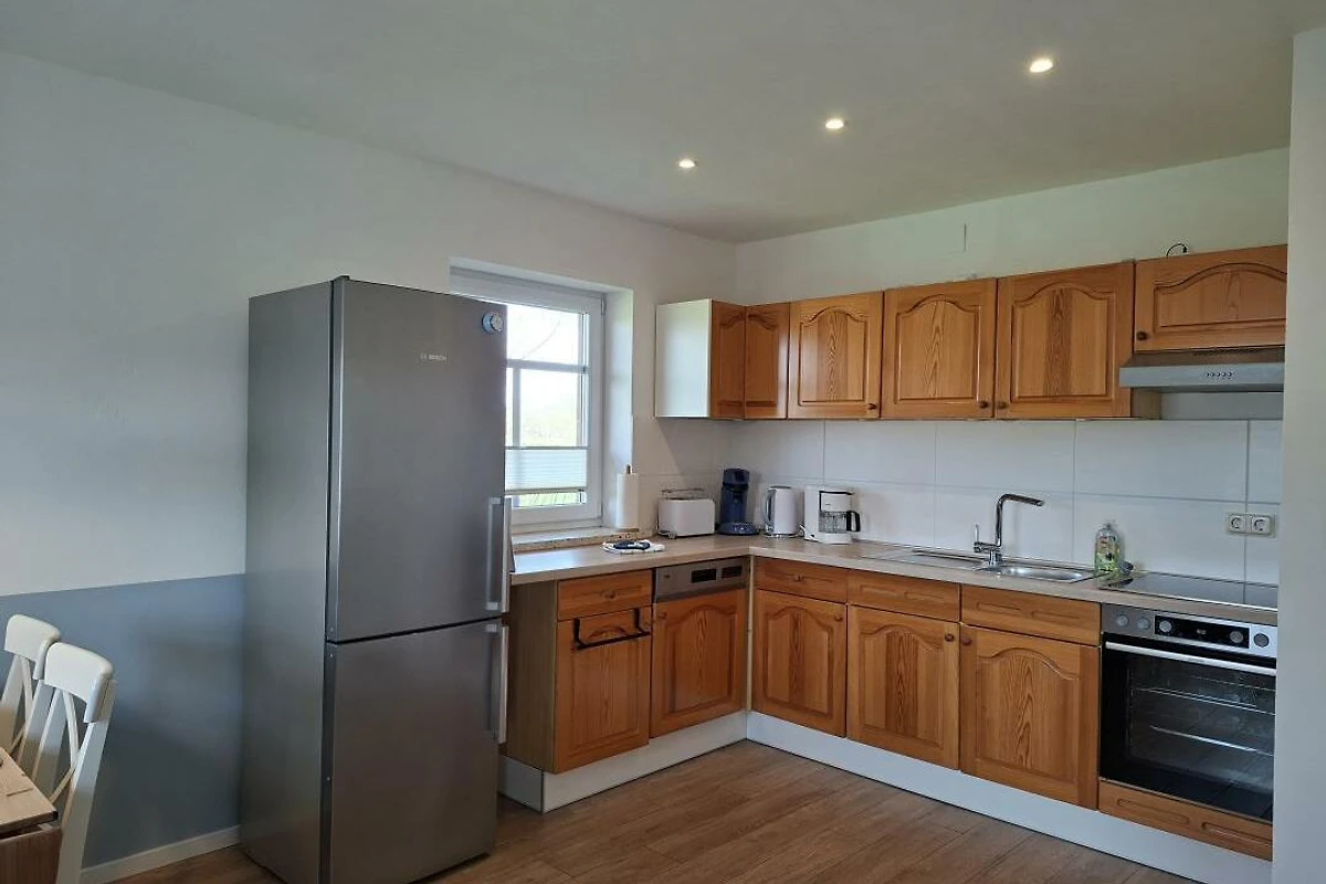 Unser Landhaus befindet sich in Berumbur, einem Ortsteil des Luftkurortes Hage. Die Ferienwohnung verfügt über 70 m² auf zwei Etagen und befindet sich im vorderen Teil des Hauses. Sie verfügt über einen separaten Hauseingang. Das Objekt ist von Feldern umgeben.