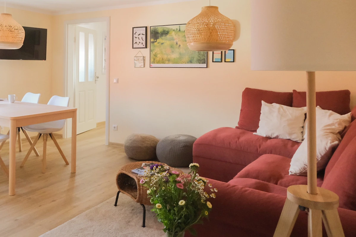 Jede Ferienwohnung hat einen eigenen Eingang, so bleibt Ihr ungestört. Grössere Familien und Gruppen können aber auch gerne das komplette Haus Hummel als Ganzes mieten. Alle Ferienwohnungen verfügen über vollausgestattete Küchen und sind familienfreundlich eingerichtet - vom Babybett, über Babyphone, Flaschenwärmer und Hochstuhl bis zum Spielzeug. Unser eingezäunter Garten (ca. 1000 qm) mit zwei Sitzecken und einen schattigen Spielbereich ist ein beliebter Aufenthaltsort. Wer noch mehr Entspannung sucht, für den haben wir auf Wunsch auch Yoga-Matten.