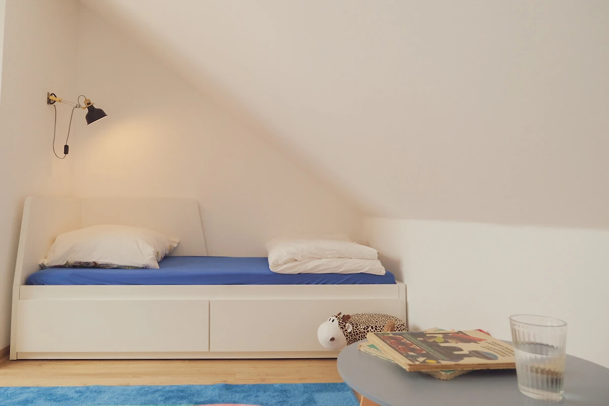 In unserem abschliessbaren Fahrradraum mit Stromanschluss könnt Ihr auch Euren Kinderwagen sicher verwahren. Und selbstverständlich gibt es für unsere Gäste freies WLAN. Direkt vor dem Haus könnt Ihr problemlos parken.