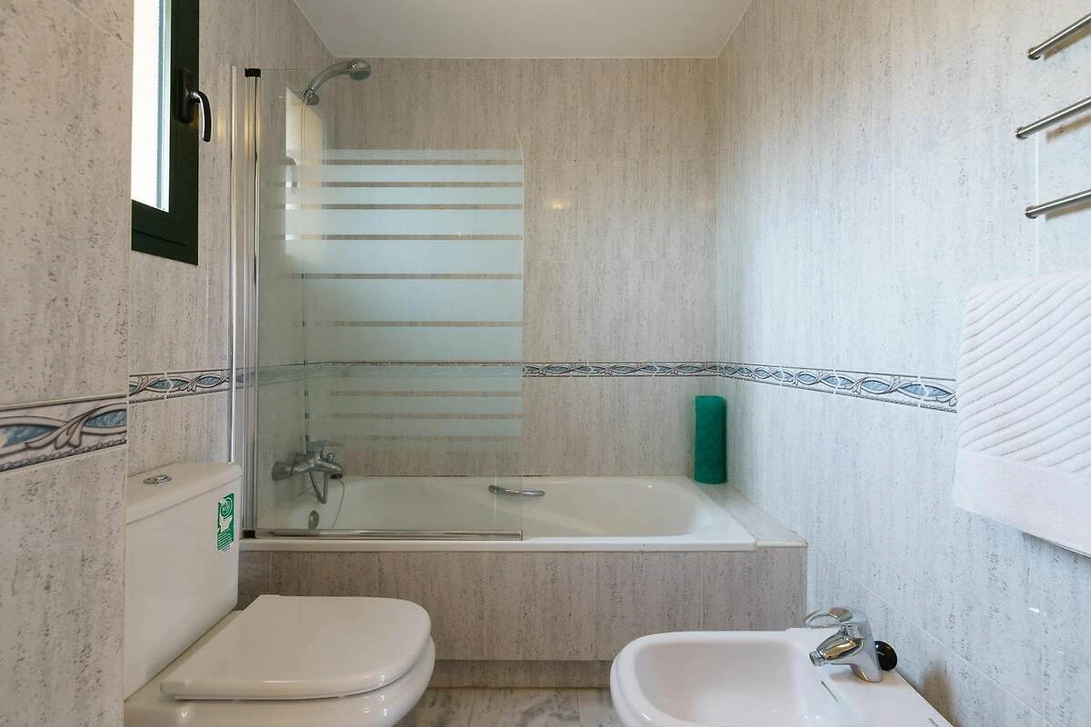 Küche(Kochplatte(Induktion), Wasserkocher, Toaster, Kaffeemaschine, Backofen, Mikrowelle, Kühl-/Gefrierkombination), Wohn/Esszimmer(TV(Satellit)), Schlafzimmer(Doppelbett), Schlafzimmer(Einzelbett, Einzelbett), Schlafzimmer(Einzelbett, Einzelbett), Badezimmer(Badewanne, Waschbecken, Toilette, Bidet), Badezimmer(Dusche, Waschbecken, Toilette), Balkon oder Terrasse, Klimaanlage, Gartenmöbel, Parkplatz, Pool(Gemeinschaftliche Nutzung mit anderen Gästen)