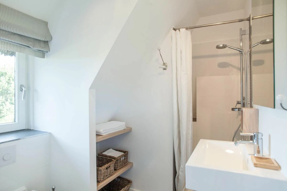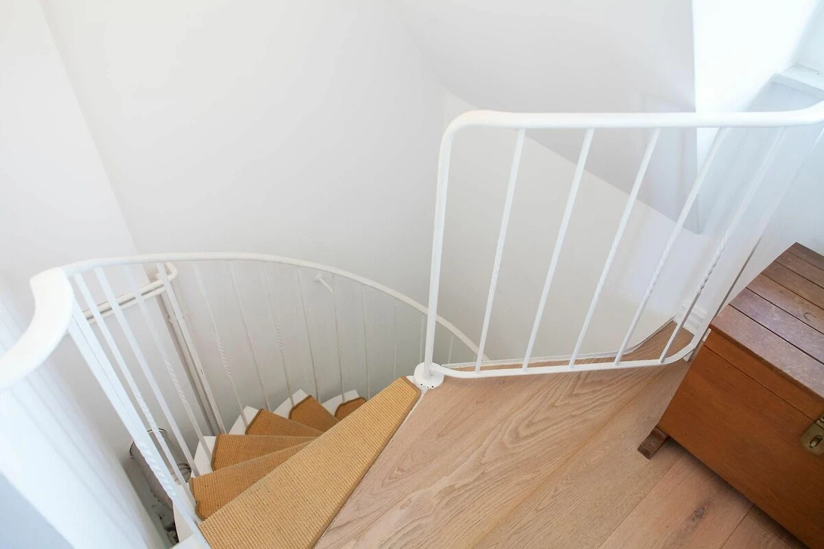 Über eine Wendeltreppe erreichen Sie zwei Schlafräume (jeweils Doppelbett) und das Duschbad.