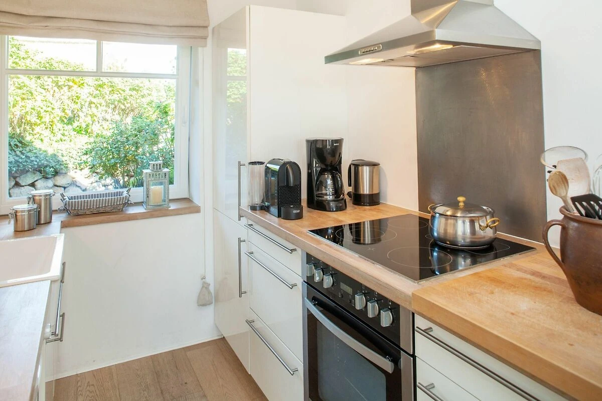 Das Haus, für bis zu vier Personen, verfügt über eine modern eingerichtete Küche, einem offenen Wohn-/Essbereich und eine große Südterrasse mit großzügigem Garten.