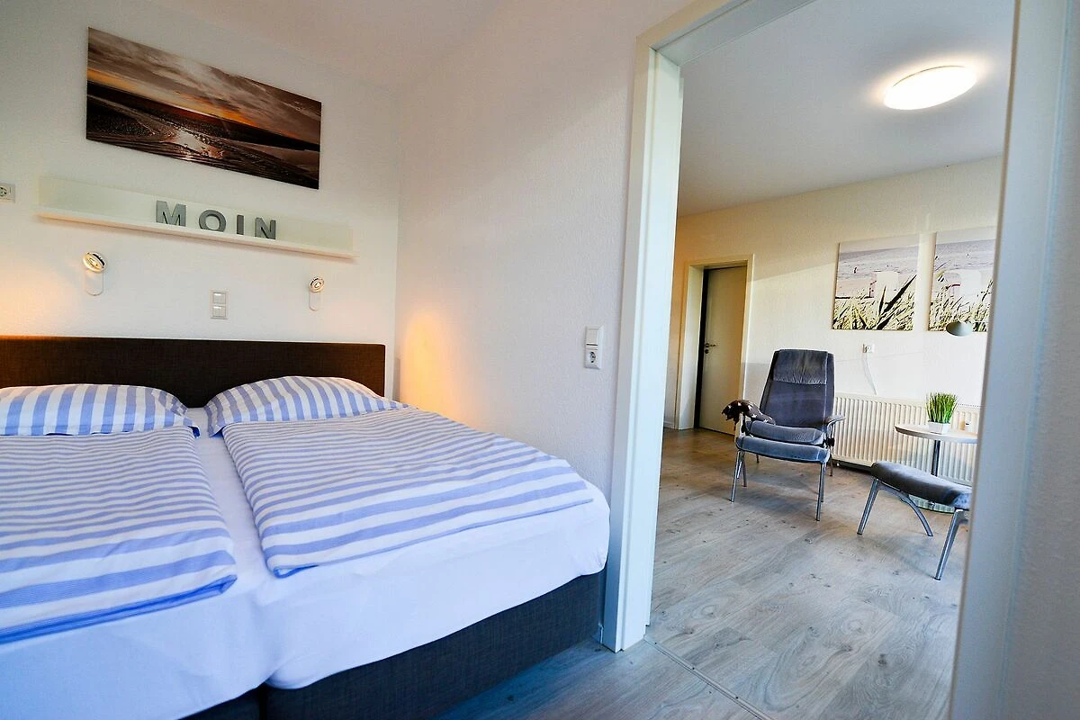 Die ca. 67m² dieser hellen und hochwertig eingerichteten Ferienwohnung für bis zu 4 Personen lassen keine Wünsche an einen Nordseeurlaub in besonderem Ambiente offen. Freuen Sie sich auf entspannte und lange Stunde auf der eigenen Terrasse und frischer Nordseeluft und genießen Sie Stunden voller Entspannung und Wellness in dem Hauseigenen Schwimmbad oder der Saunalandschafft mit Dampfsauna (gegen Gebühr).