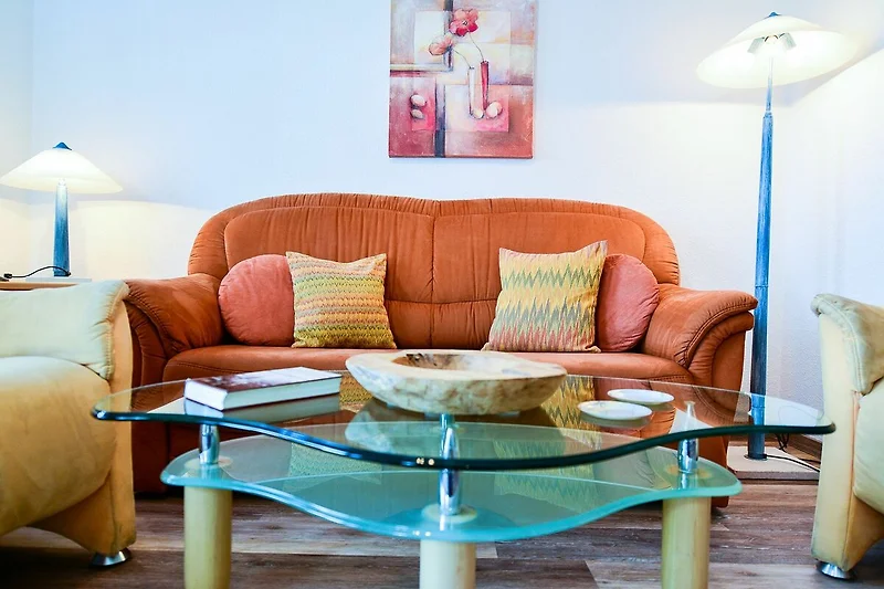 Auf ca. 48m² begrüßt diese Ferienwohnung Ihre Gäste mit charmanter Ausstattung und genügend Raum, um sich ganz auf den Urlaub zu konzentrieren. Die Ausstattung der Ferienwohnung lässt nichts vermissen und das Bad mit Badewanne garantiert frische und neue Energie, um tagtäglich frisch in einen neuen Urlaubstag zu starten.