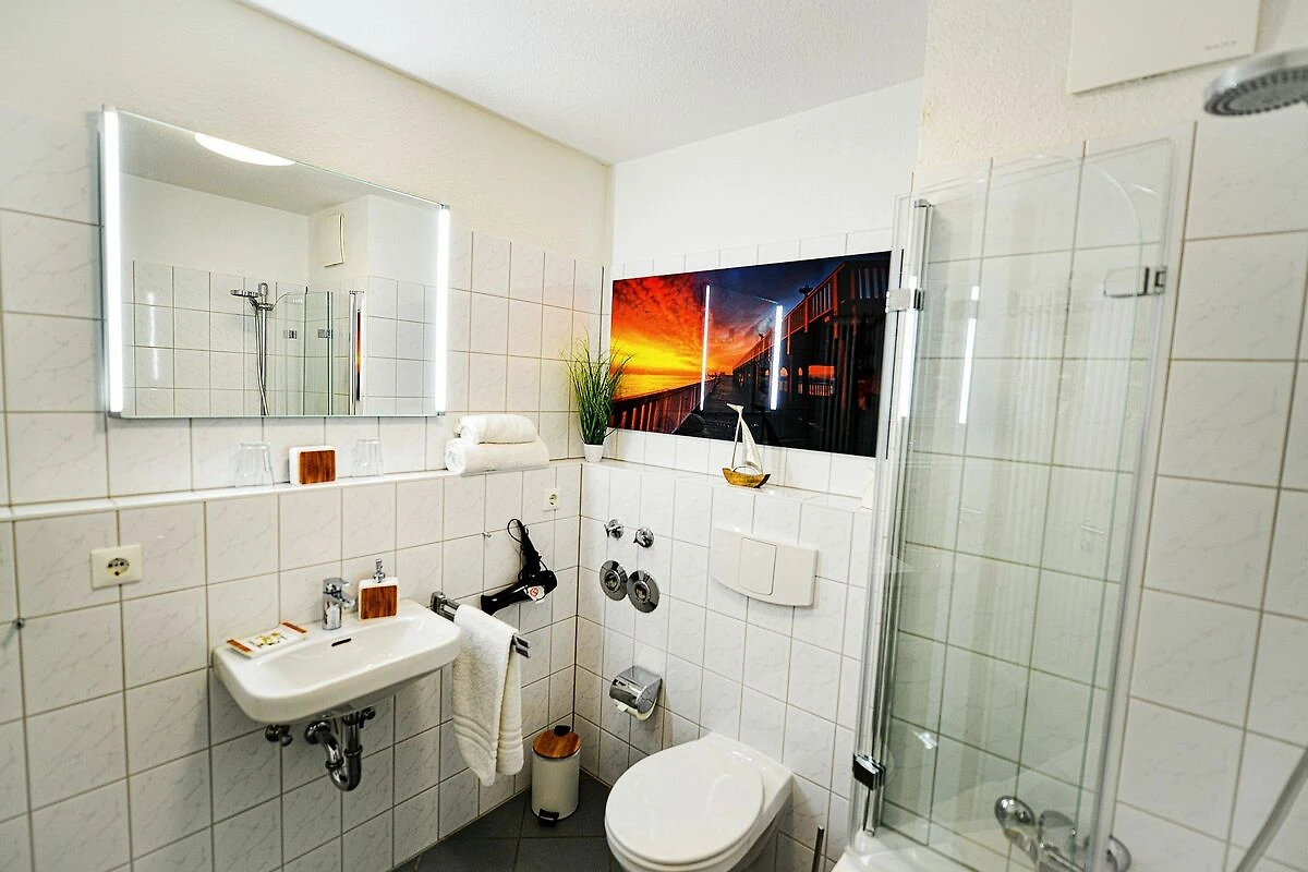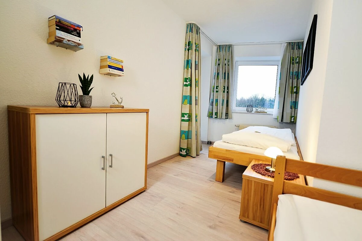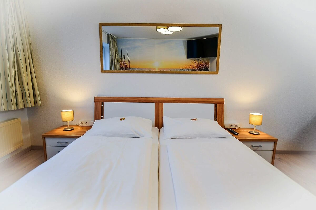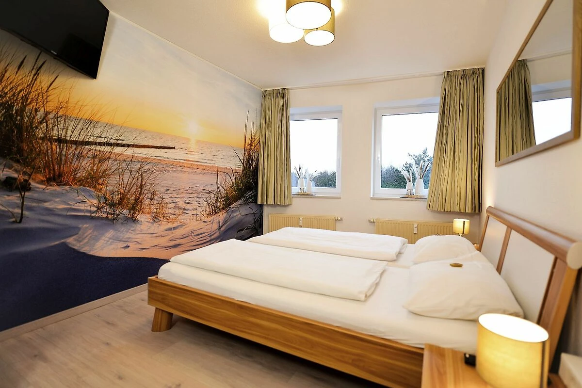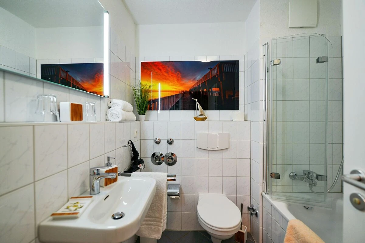 Mit einer Fläche von 63m² bietet diese Ferienwohnung ein ideales Zuhause für Ihren Nordseeurlaub. Die liebevoll neu gestaltete Einrichtung lässt keine Wünsche offen und sorgt für Gemütlichkeit und Entspannung. Die vollwertige Ausstattung umfasst eine hochwertige Küchenzeile, die sich perfekt für die Zubereitung besonderer Mahlzeiten eignet. Der Wohnbereich lädt zu gemütlichen TV-Abenden ein, während das Bad mit Badewanne Erholung und lange Bäder für die nötige Energie bietet. Im Schlafzimmer mit dem Doppelbett gibt es jetzt auch einen Fernseher, um gemütliche Stunden vor dem Schlafengehen zu genießen. Der Strand ist nur einen kurzen Spaziergang entfernt und schnell zu erreichen. Für erholsame Stunden nach einem Tag am Meer bietet der überdachte Balkon mit seitlicher Seesicht den idealen Rückzugsort.