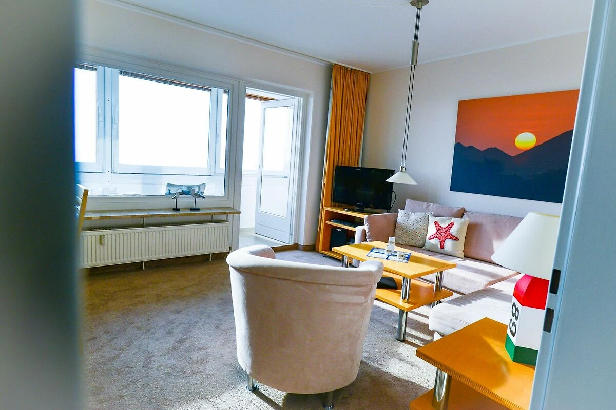 Die charmante Ferienwohnung befindet sich in direkter Strandnähe und mit exklusivem Panoramablick in der 14. Etage des Standhochhauses in Cuxhavens Kurteil Sahlenburg.