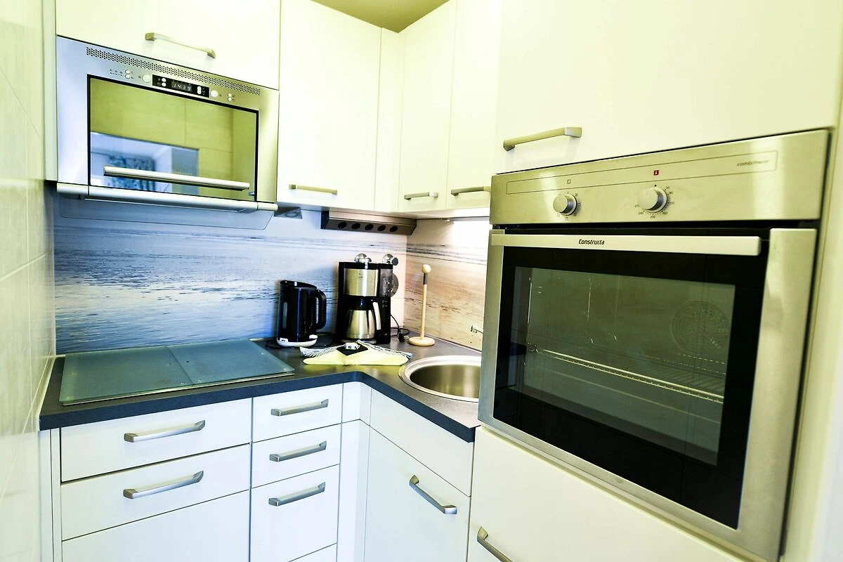 Die lichtdurchflutete Ferienwohnung befindet sich in direkter Strandlage mit einer separaten, offenen und vollausgestatteten Küchenzeile, sodass Sie jeden Urlaubstag mit einem entspannten Frühstück mit direktem Blick aufs Meer beginnen können.
