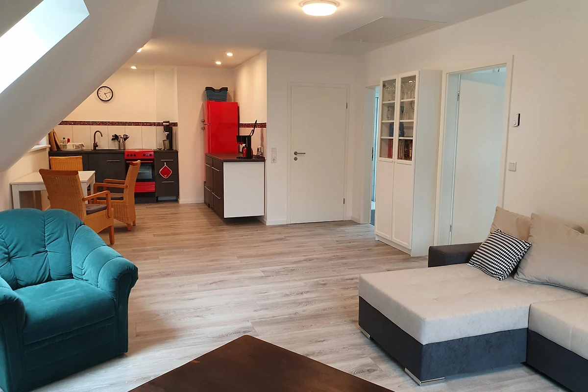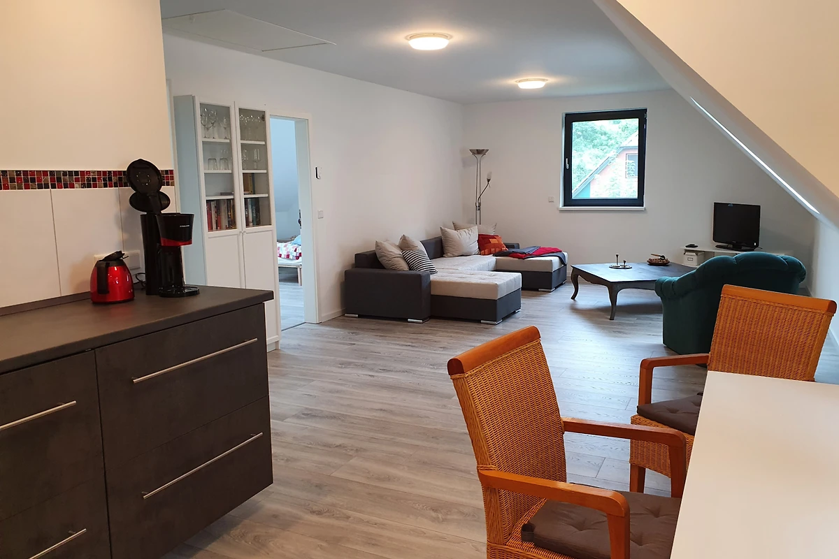 Unsere Ferienwohnung Walnusstraum bietet Ihnen auf ca. 60 qm Wohnfläche ausreichend Platz für bis zu 4 Personen. Ein gemütliches Schlafzimmer mit Doppelbett und ein Sofa inkl. Schlaffunktion stehen für Sie als Schlafplätze bereit. Das schicke Badezimmer ist mit Dusche, Wanne, WC und Wschtisch ausgestattet. Der Wohn-Essbereich verfügt über einen grosszügigen Wohnbereich mit grossem Sofa, Sessel und Flachbild-TV, einem Essbereich und einer neuen Küche inkl. E-Herd, Backofen, Kühlschrank und Gefriermöglichkeit. Weitere elektr. Geräte ( Kaffeemaschine, Toaster, Wasserkocher etc) stehen Ihnen natürlich ebenfalls zur Verfügung. Ihren Hund (für 10 Euro pro Nacht), bringen Sie gerne mit. Die Bettwäsche und Handtücher sind bereits im Mietpreis enthalten.