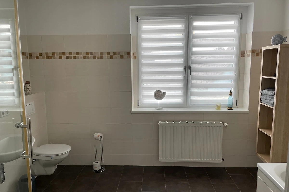 Ruhig gelegene Ferienwohnung mit separatem Hauseingang am Rande der Landeshauptstadt Magdeburg. Die Wohnung verfügt über drei Schlafzimmer (1xDoppelbett, 1xEinzelbett, 1xDoppelbett zum ausziehen) verteilt auf insgesamt 80qm, ein grosses Tageslichtbad mit Dusche und Badewanne, ein separates Gäste-WC, ein Wohnzimmer und eine komplett ausgestattete Küche, Smart-TV und WLAN. Bettwäsche und Handtücher sind im Preis inbegriffen. Der Elberadweg befindet sich ganz in der Nähe, eine S-Bahnstation ist in 200 m zu Fuss zu erreichen (in 8 Minuten mit der S-Bahn ins Zentrum der Landeshauptstadt), mit dem Auto sind sie in nur 10 Minuten im Stadtzentrum. Das öffentliche Strassenbahn Netz der Stadt Magdeburg ist ebenfalls zu Fuss zu erreichen. Diverse Einkaufsmöglichkeiten wie Supermärkte oder auch grosse Shoppingcenter befinden sich in unmittelbarer Nähe. Die Autobahnen A14 und A2 sind ebenfalls schnell zu erreichen.