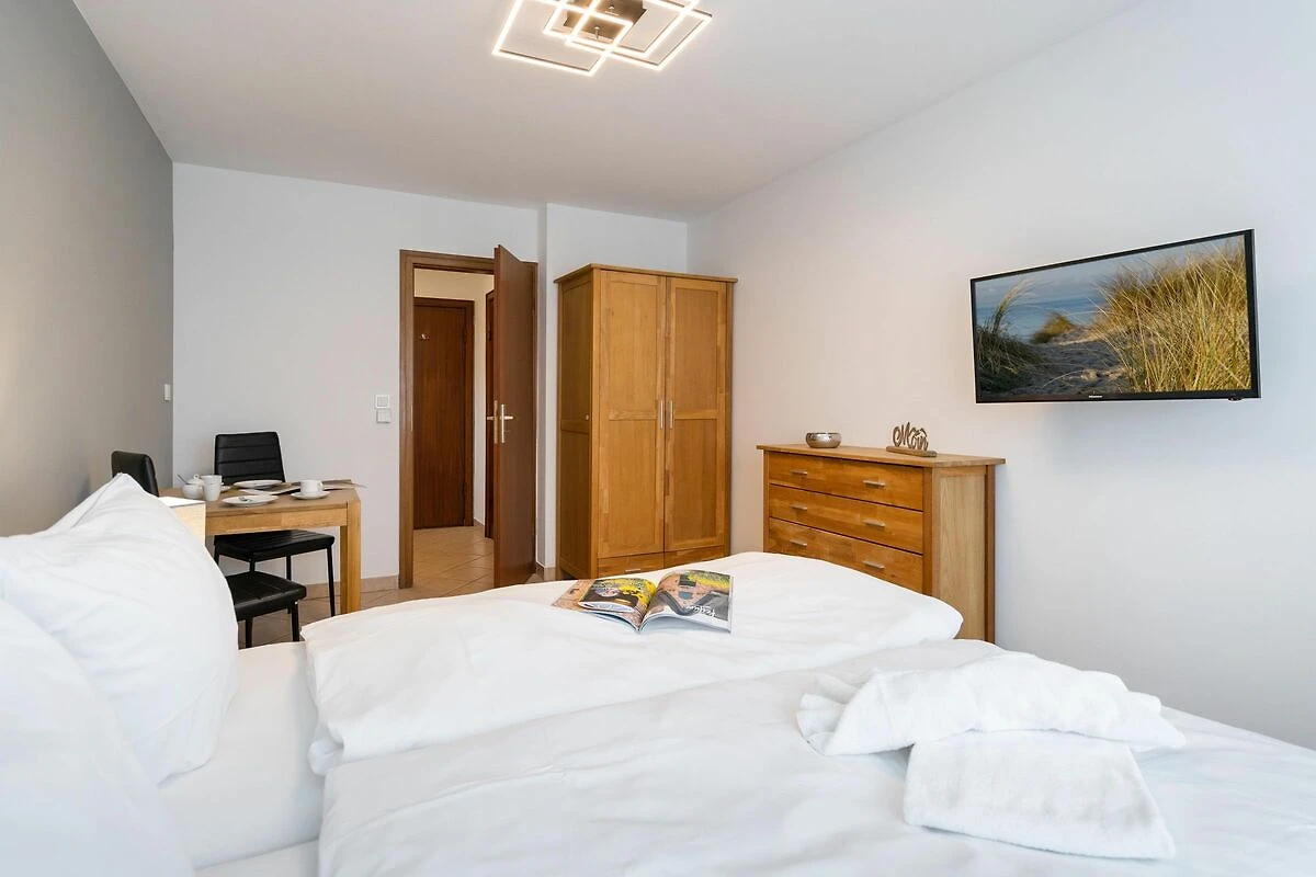 Dieses einfache Einzimmerapartment für bis zu 2 Personen befinden sich in einer absolut zentralen Lage von Westerland. Der Wohnbereich bietet Ihnen ein Doppelbett sowie eine Essecke und ist mit einem TV ausgestattet. Die Ferienwohnung verfügt über ein Duschbad sowie eine gut ausgestattete Pantryküche. Nutzen Sie gerne den Gemeinschaftsgarten samt Strandkorb (in der Saison). Kostenloses WLAN sowie ein optional buchbarer PKW-Stellplatz sind vorhanden. Haustiere sind erlaubt. Die Wohnanlage befindet sich ca. 150 m hinter dem Westerländer Bahnhof und ist an einem Parkplatz gelegen.