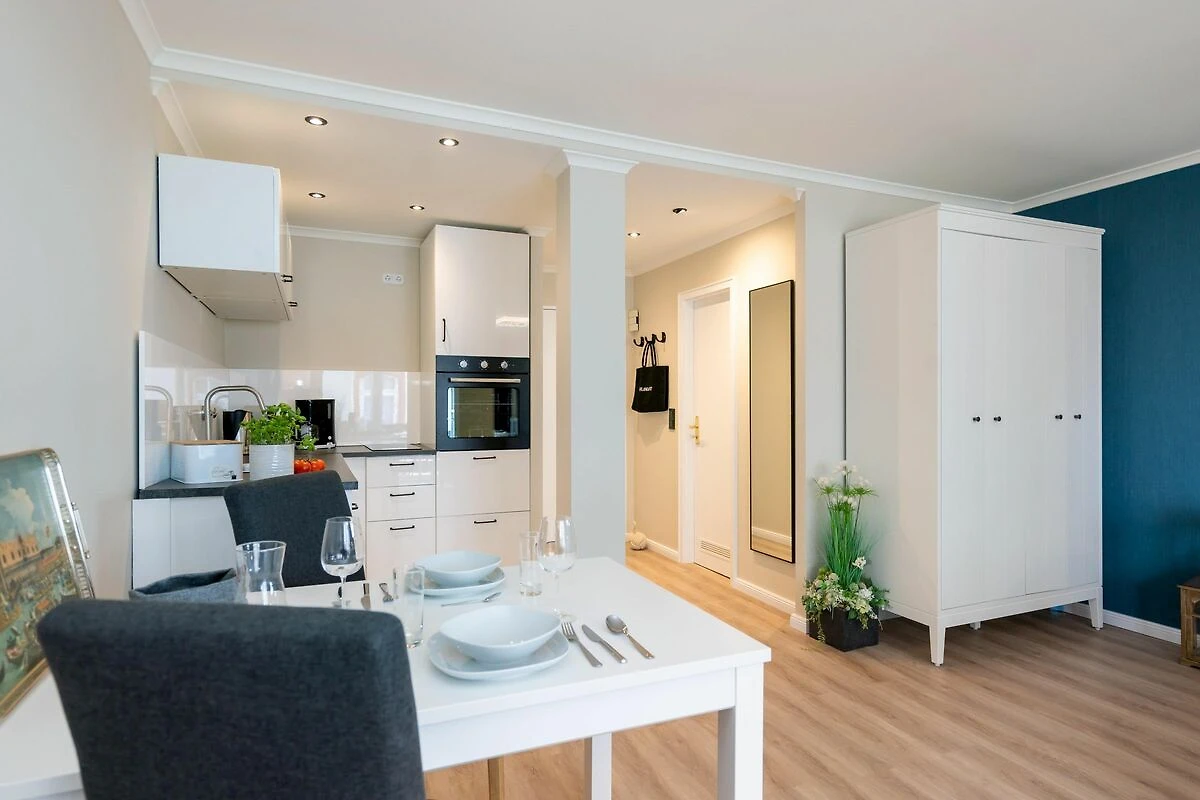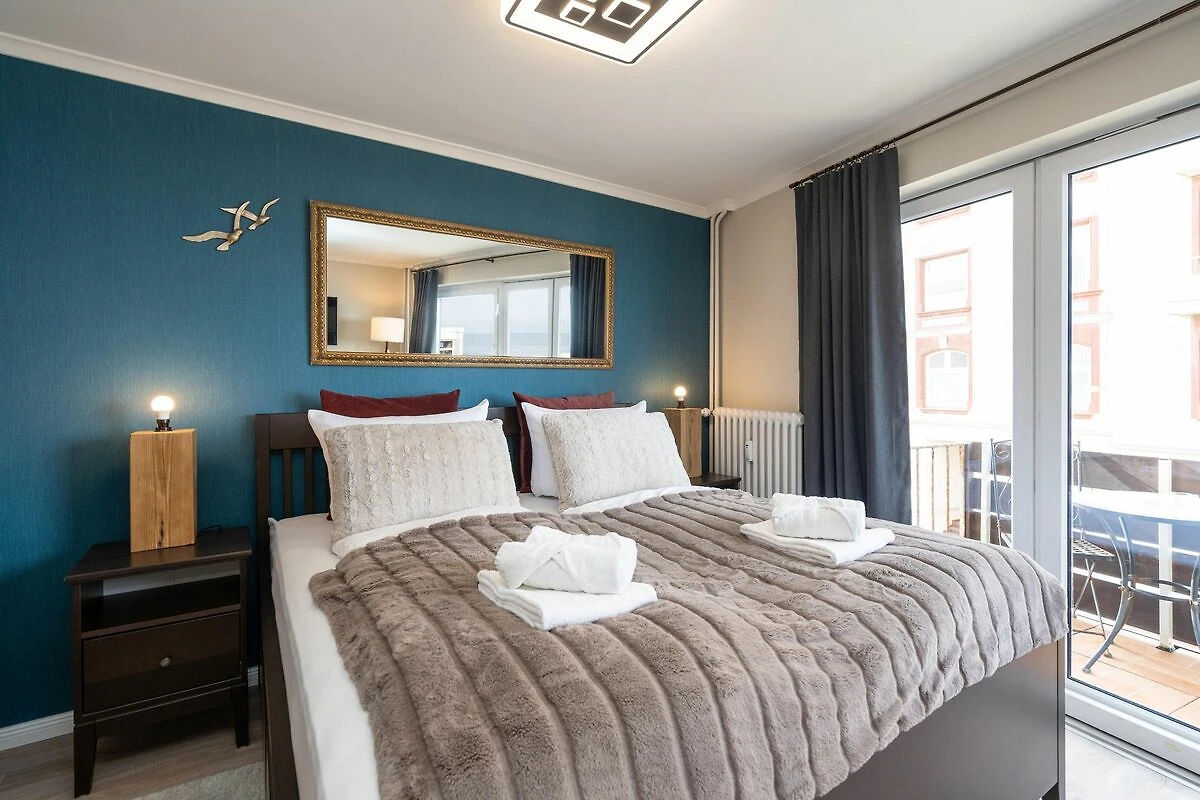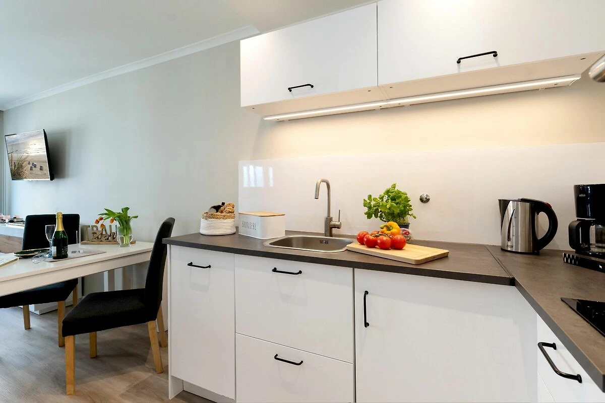 Dieses moderne Einzimmerappartement für bis zu 2 Personen befindet sich im 2. Stock und bietet Ihnen eine Kombination aus stilvoller Ausstattung, direkter Stadt- und Strandlage sowie einem einzigartigem Meerblick. Die offene Küche samt Geschirrspüler ist voll ausgestattet. Der angrenzende Wohn- und Schlafbereich mit Doppelbett und Essecke lädt zur absoluten Entspannung ein. Im Badezimmer erwartet Sie eine großzügige Dusche. Nutzen Sie gerne den sonnigen Westbalkon und sehen Sie die Sonne hinter der Nordsee untergehen. Kostenloses WLAN sowie ein Fahrstuhl sind vorhanden. Haustiere sind herzlich willkommen. Das Appartement wurde mit dem Traveller Review Avard 2023 von Booking ausgezeichnet!