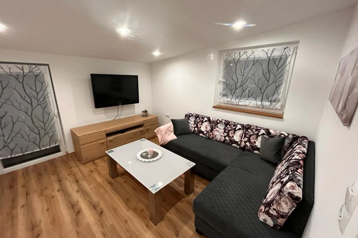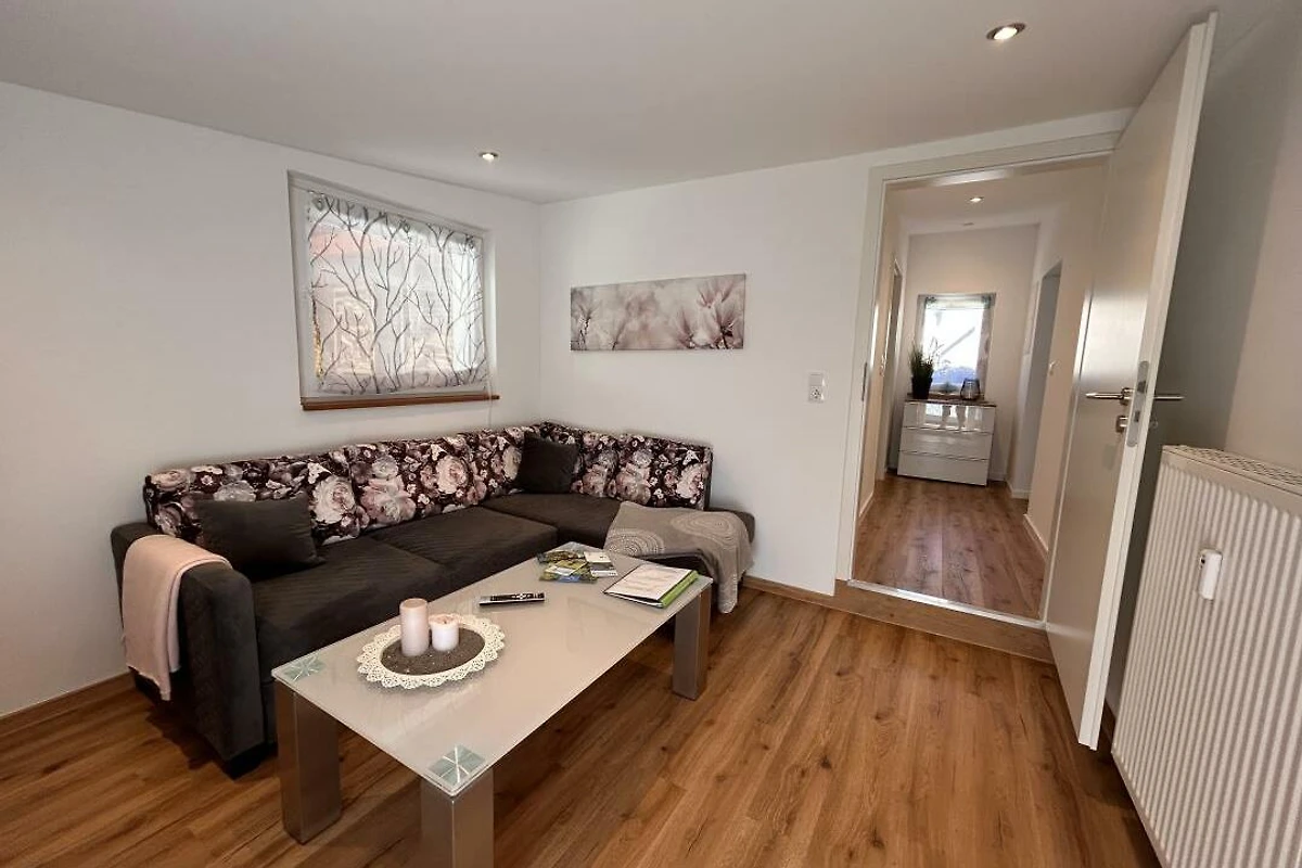 Diese Ferienwohnung ca. 60 qm gross im 1 Stock ist ideal für 4 Personen (auf einem Sofa mit Bettfunktion könnte eine weitere Person übernachten).