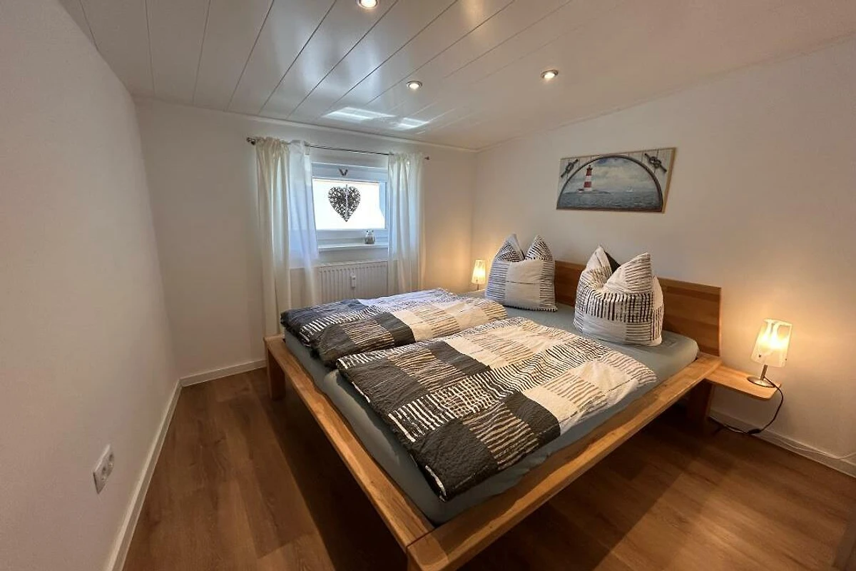 Im Eingangsbereich finden Sie eine Garderobe. Die Wohnung verfügt über 2 Schlafzimmer mit Kleiderschrank (Schiebetür mit Spiegel) und einem Massivholzbett 160 x 200 cm. Sie schlafen auf hochwertigen 7 Zonen Kaltschaum-Matratzen und Lattenrost