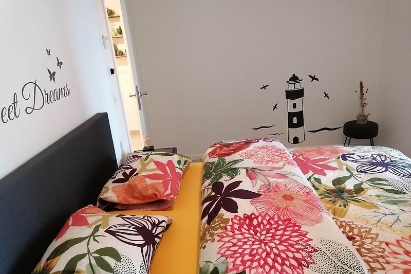 Sonnige, charmante und komfortable Ferienwohnung mit 2 Schlafzimmern für bis zu 4 Personen, nahe am Strand. Ruhige Lage. Mit kleinem Garten. Erweiterbar auf 6 Personen (Studio)