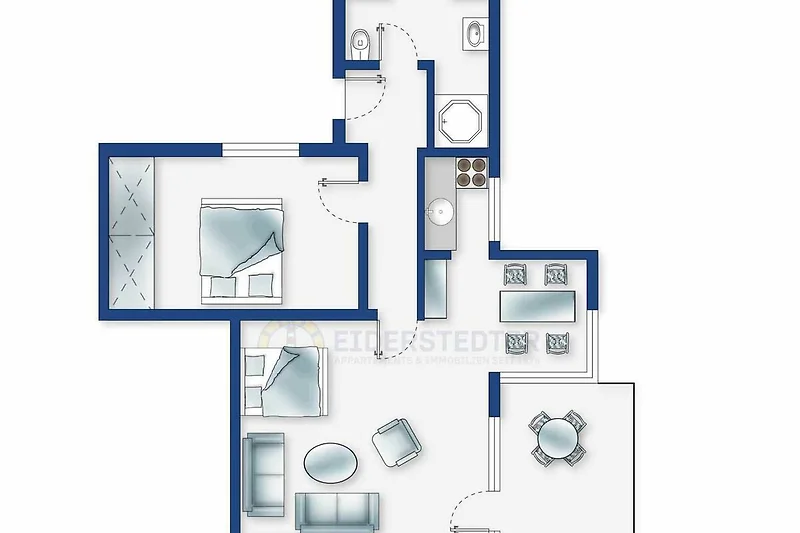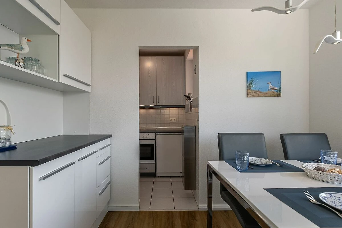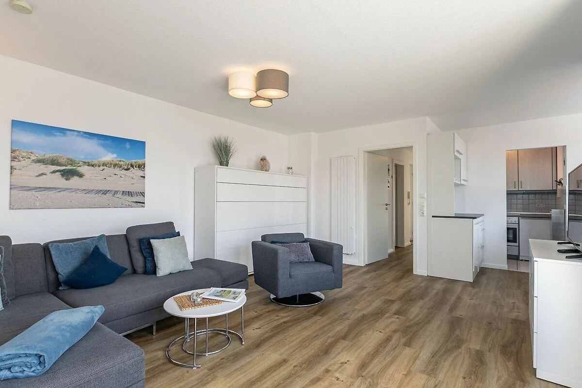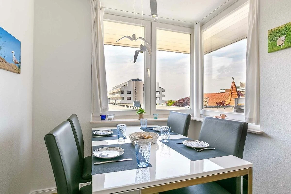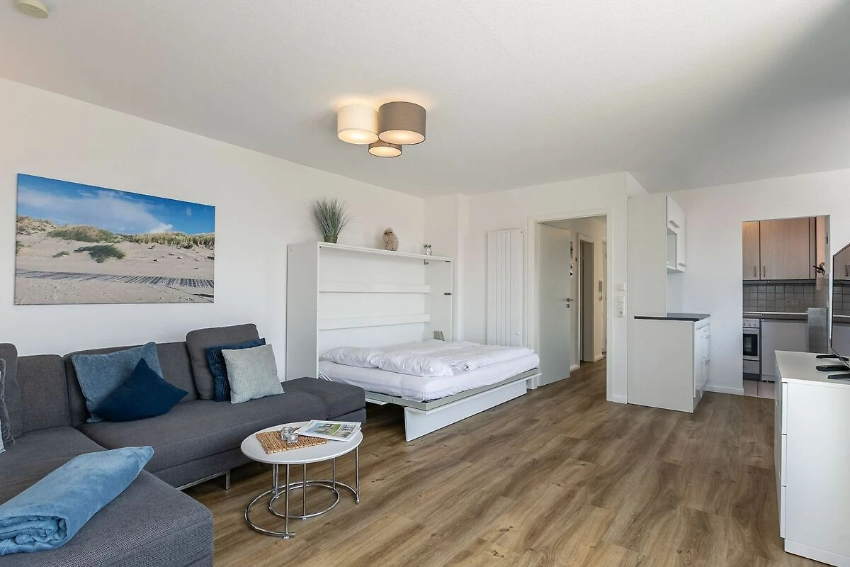 Die Wohnanlage liegt relativ ruhig an einer Sackgasse, nur 5 Gehminuten vom Kurzentrum mit dem Kurmittelhaus und der Dünentherme entfernt. Die Strandpromenade ist ebenfalls nur einen Ballwurf entfernt, den Strand erreichen Sie über die Seebrücke bequem zu Fuss. Einkaufsmöglichkeiten und Restaurants sind in der Nähe. Aufgrund der zentralen Lage eignen sich die Wohnungen auch gut für Bahnreisende.