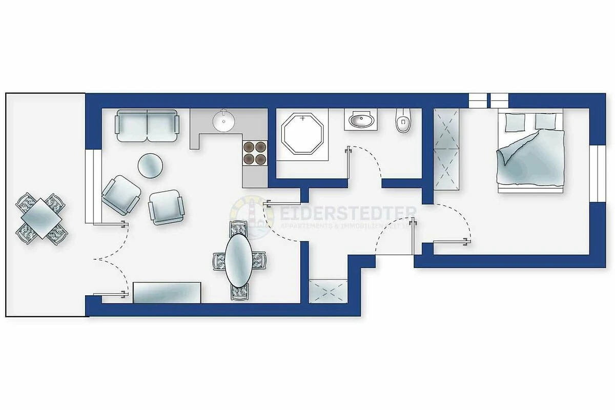 Gemütliche 2-Zimmer-Ferienwohnung mit ca. 43 qm auf 1 Ebene (1. OG) für bis zu 3 Personen. In ruhiger und strandnaher Lage direkt am Strandübergang im Ortsteil Böhl in St. Peter-Ording. Mit herrlichem Meeresblick. Ruhe und Erholung direkt am Nordseedeich. Zum Strandübergang sind es nur wenige Meter.