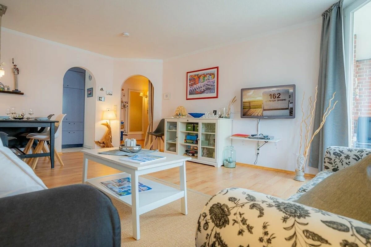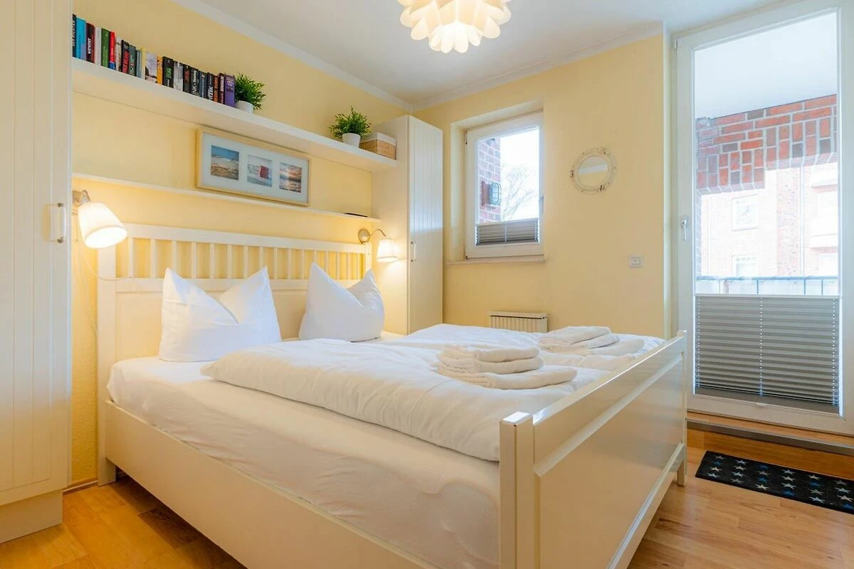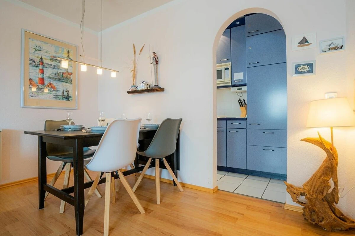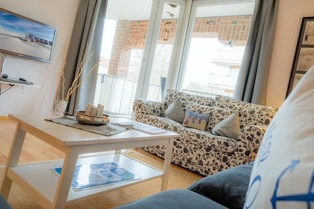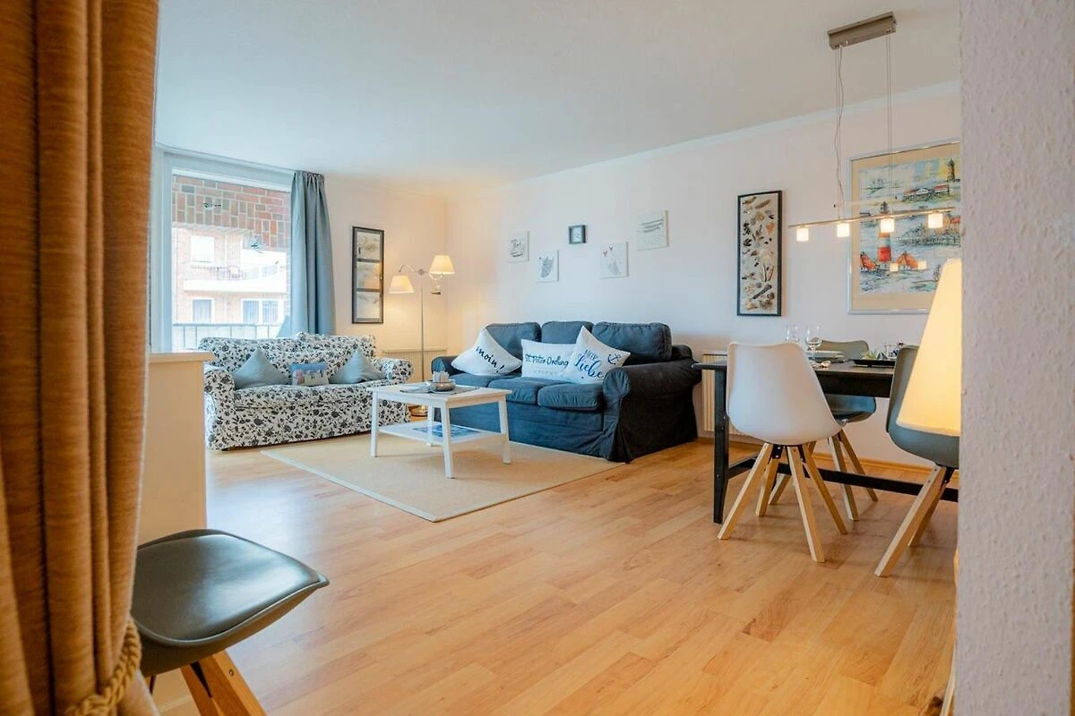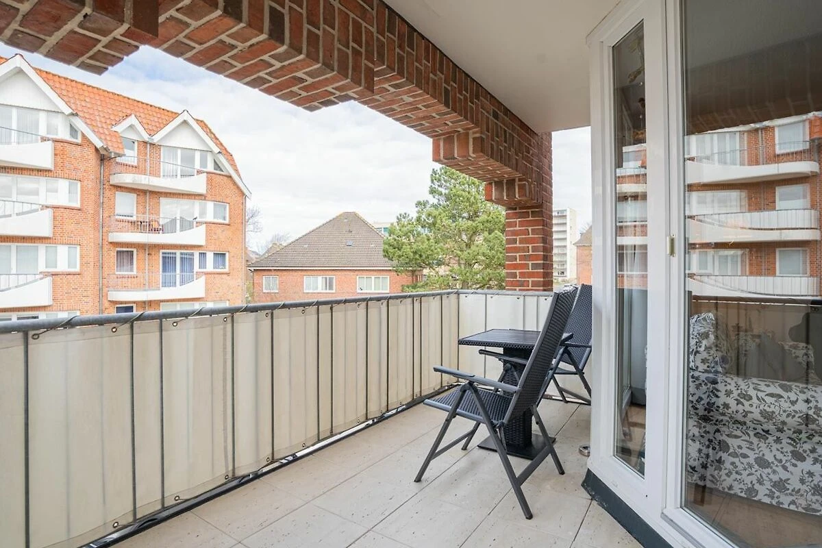 Die Wohnanlage liegt relativ ruhig an einer Sackgasse, nur 5 Gehminuten vom Kurzentrum mit dem Kurmittelhaus und der Dünentherme entfernt. Die Strandpromenade ist ebenfalls nur einen Ballwurf entfernt, den Strand erreichen Sie über die Seebrücke bequem zu Fuss. Einkaufsmöglichkeiten und Restaurants sind in der Nähe. Aufgrund der zentralen Lage eignen sich die Wohnungen auch gut für Bahnreisende.