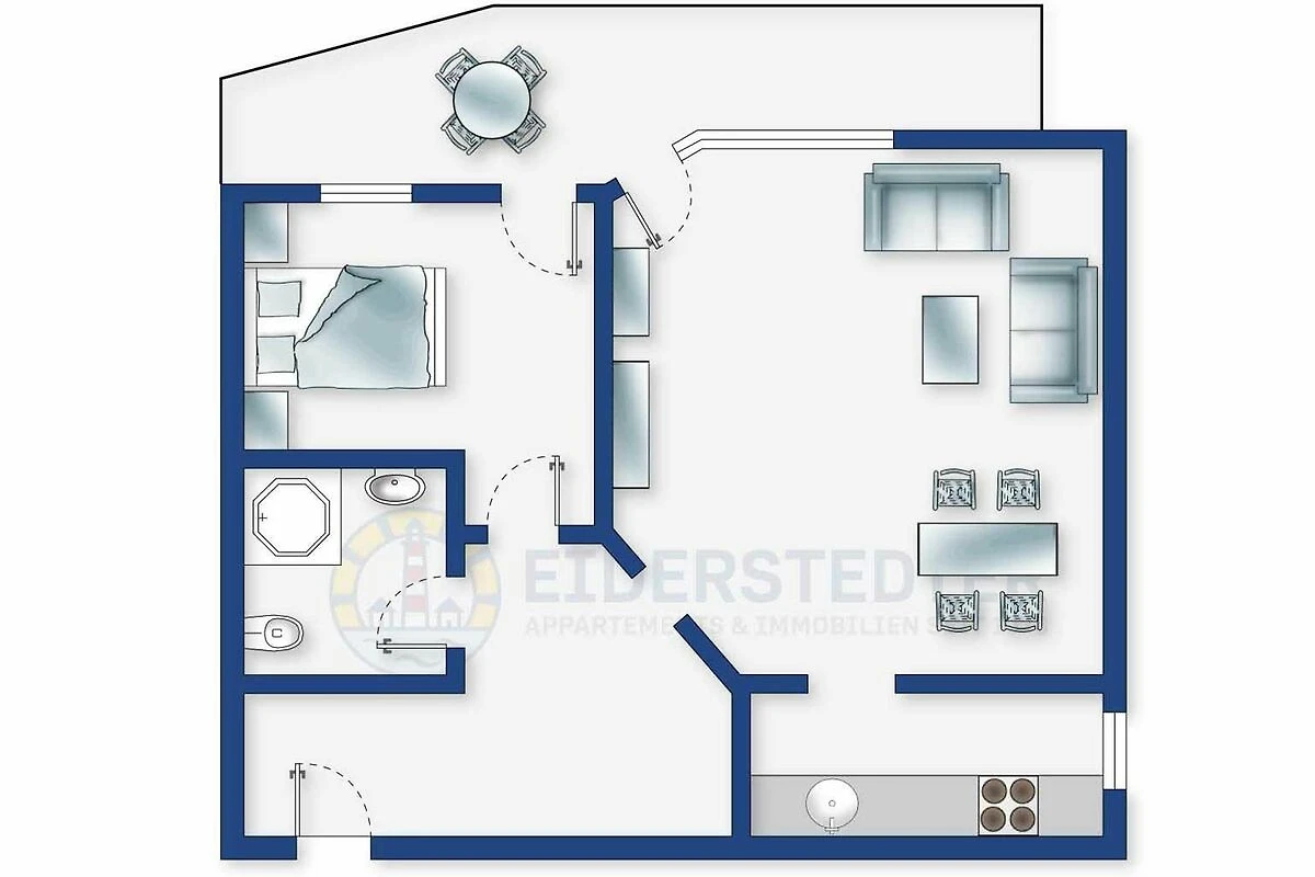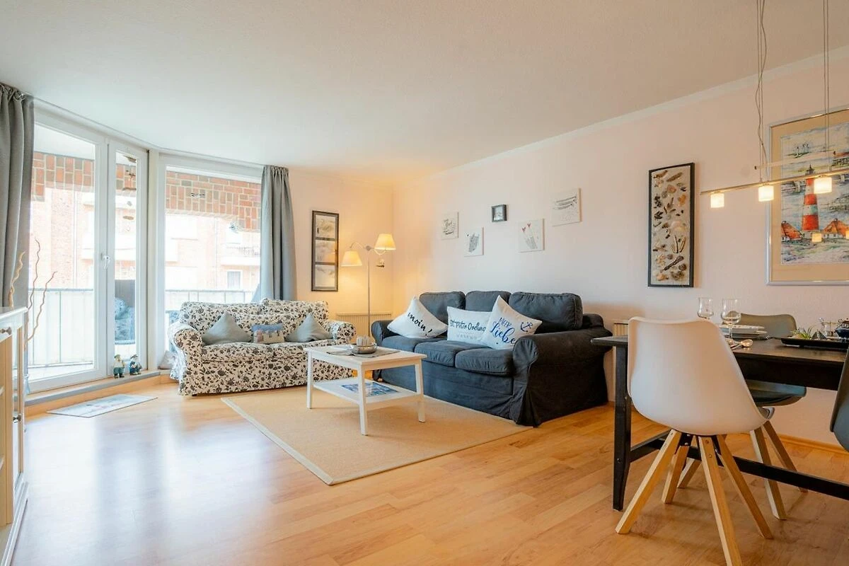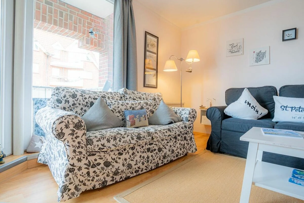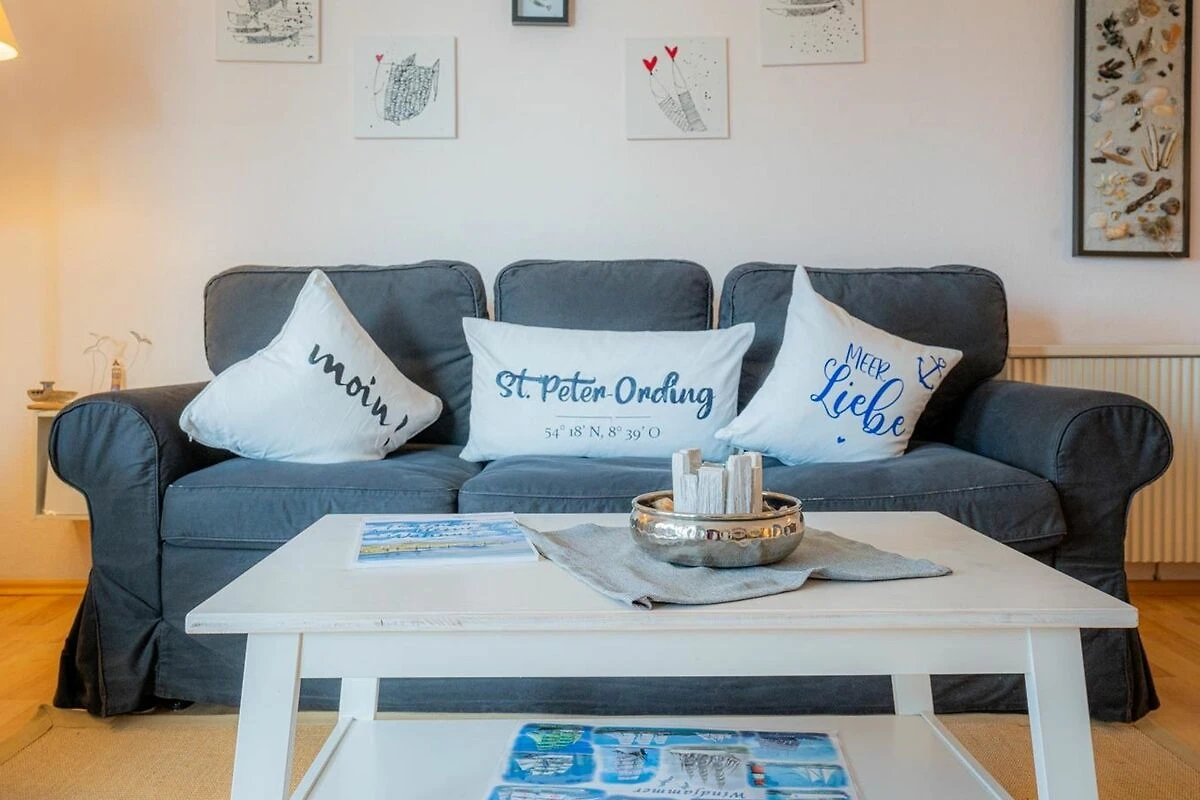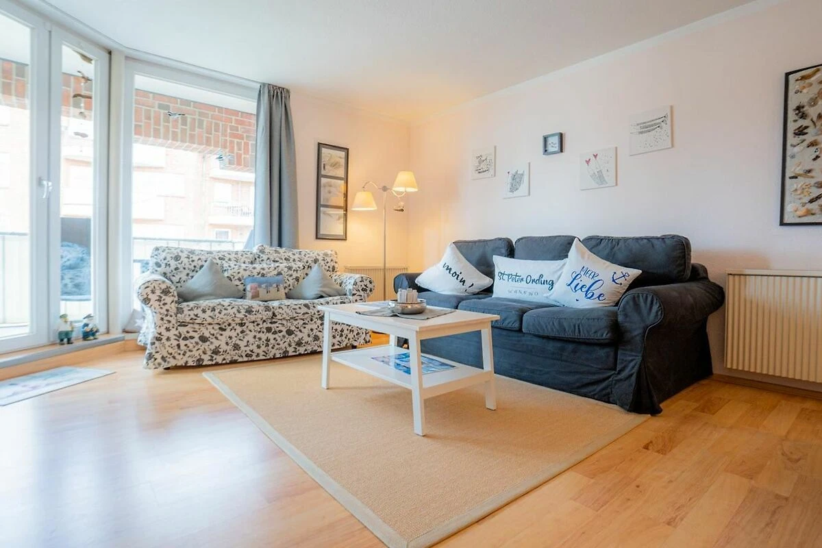 Strandnahe 2-Zimmer-Ferienwohnung mit ca. 45 qm auf 1 Ebene (2. OG) für bis 2 Personen. Zentrale Lage im Ortsteil Bad in St. Peter-Ording. Zur Promenade, dem Strand, der Dünentherme und allen Restaurants und Geschäften des Kurzentrums sind es nur wenige Gehminuten. Mit grossem Balkon.