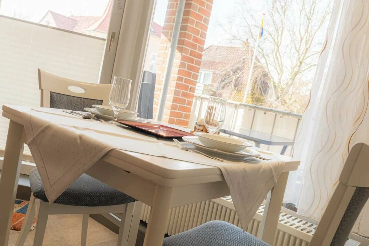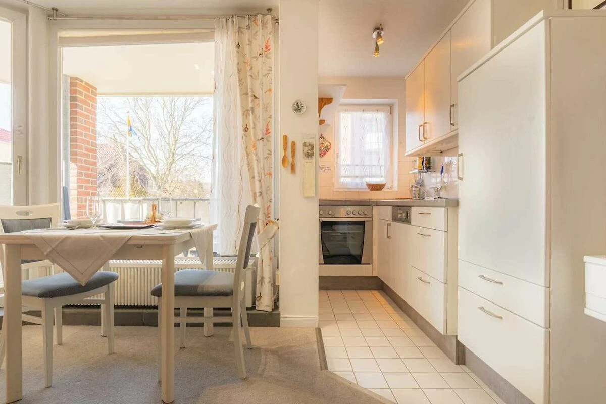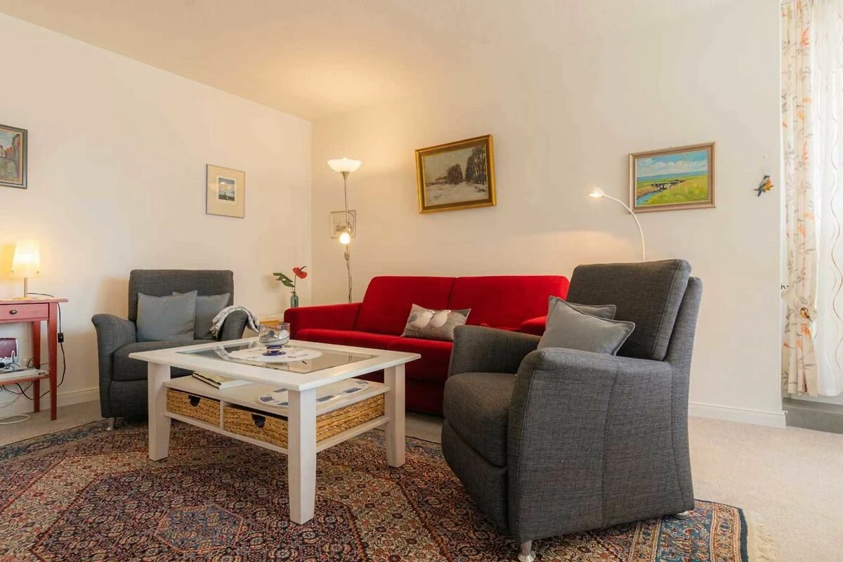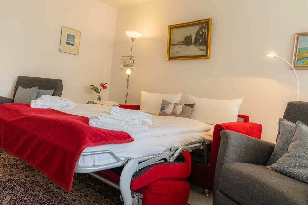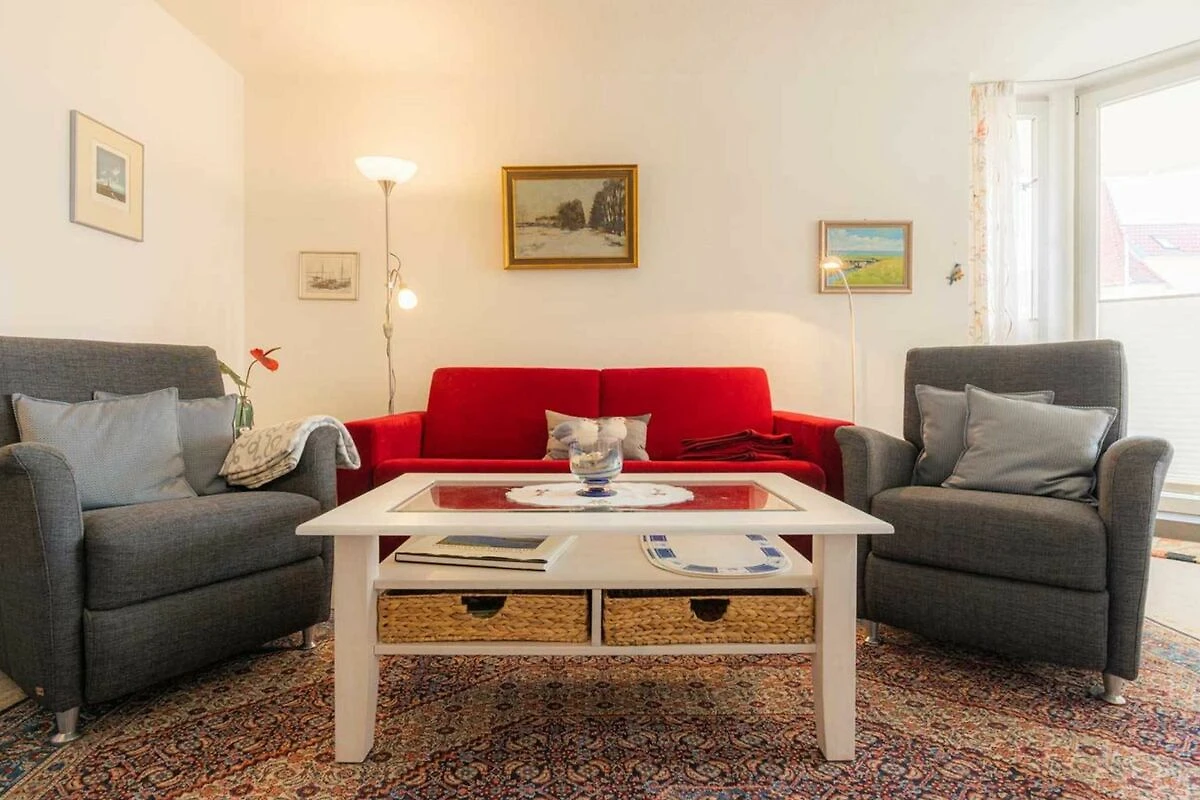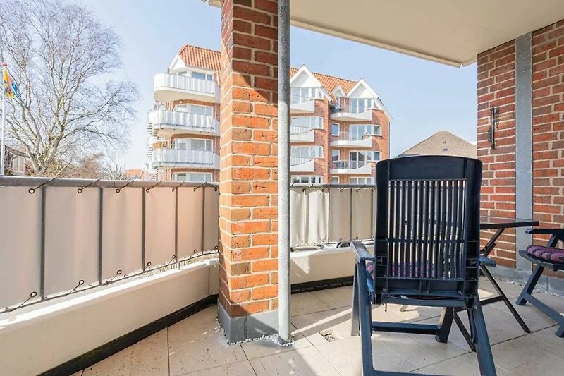 Die Wohnanlage liegt relativ ruhig an einer Sackgasse, nur 5 Gehminuten vom Kurzentrum mit dem Kurmittelhaus und der Dünentherme entfernt. Die Strandpromenade ist ebenfalls nur einen Ballwurf entfernt, den Strand erreichen Sie über die Seebrücke bequem zu Fuss. Einkaufsmöglichkeiten und Restaurants sind in der Nähe. Aufgrund der zentralen Lage eignen sich die Wohnungen auch gut für Bahnreisende.