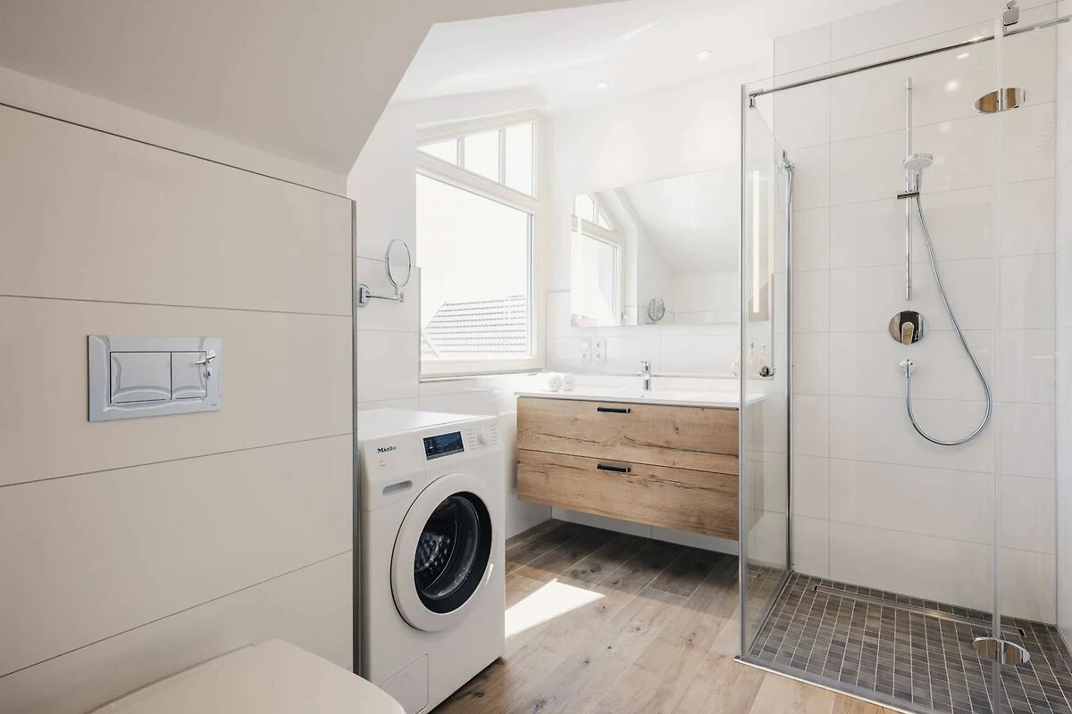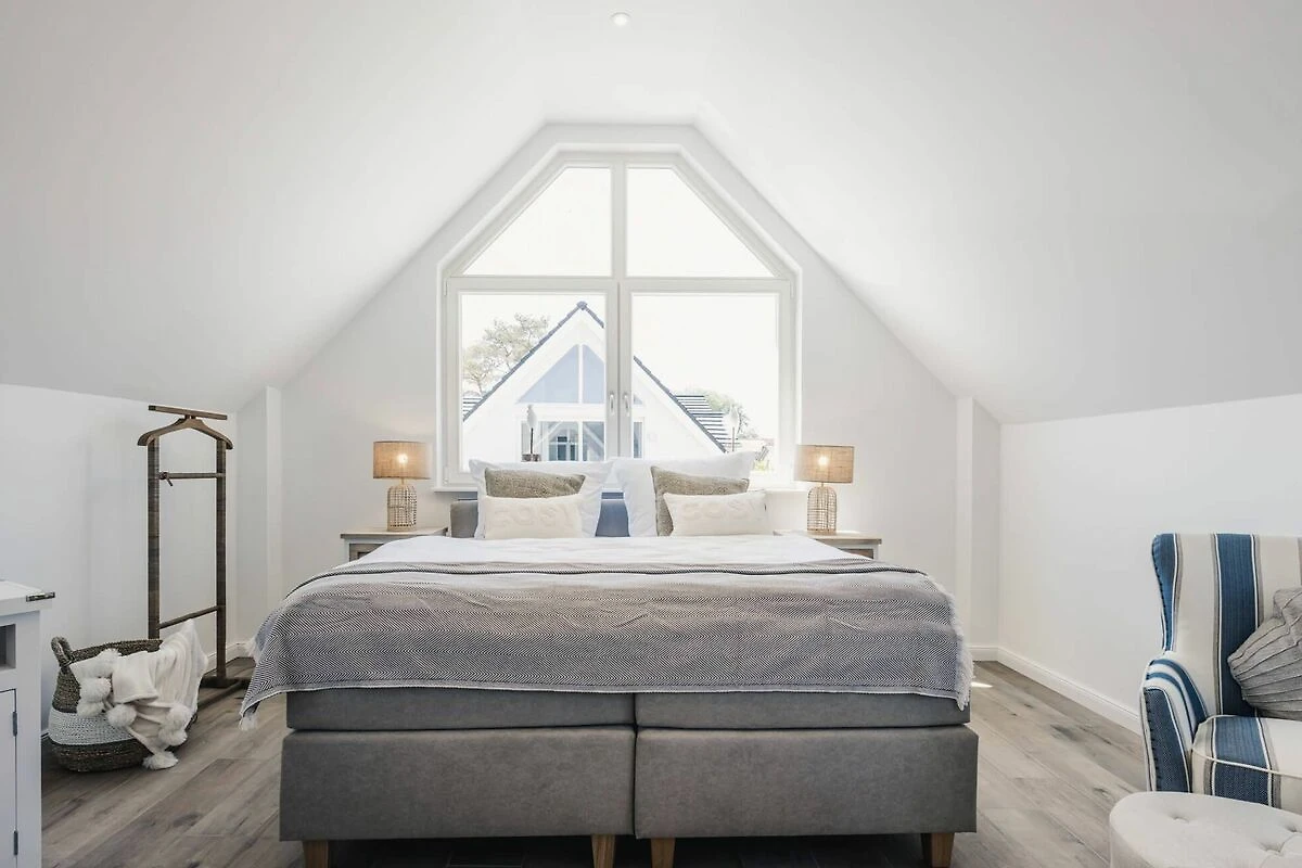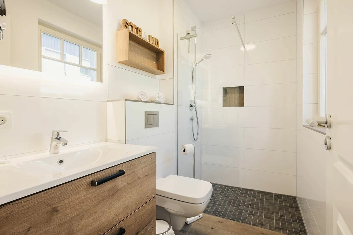Im Erdgeschoss empfängt Sie ein lichtdurchfluteter Wohn- und Essbereich, der zum Entspannen und Beisammensein einlädt. Die offene Küche ist mit allen Annehmlichkeiten ausgestattet, um köstliche Mahlzeiten zu zaubern. Von hier aus gelangen Sie auf die sonnige Südterrasse, wo Sie den Tag perfekt ausklingen lassen können. Geniessen Sie ein Glas Wein und ein gutes Buch in dem Strandkorb Ihrer Terrasse und lassen Sie die Sonne auf sich wirken. So können Sie den Urlaubstag in vollen Zügen geniessen und die Seele baumeln lassen.