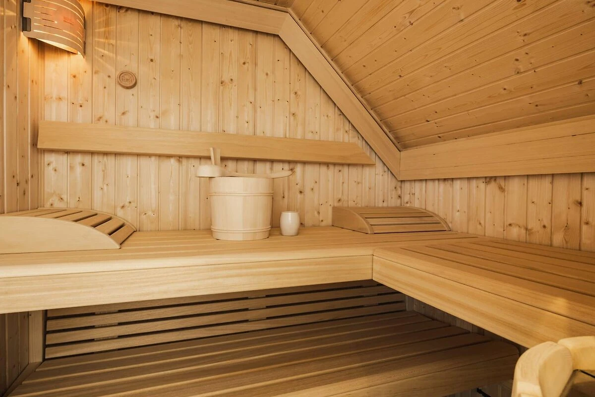 Im Obergeschoss lädt ein geräumiges Schlafzimmer mit Doppelbett zum Träumen ein. Beide Schlafzimmer sind mit komfortablen Boxspringbetten und Smart-TVs ausgestattet. Ein weiteres Highlight ist das voll ausgestattete Badezimmer mit Infrarotsauna und bodengleicher Dusche.