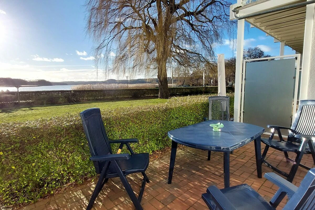 Die dazugehörige Südterrasse mit einem wunderschönen Blick bis hin zum Schmachter See lädt zum Sonnenbaden und Verweilen ein.