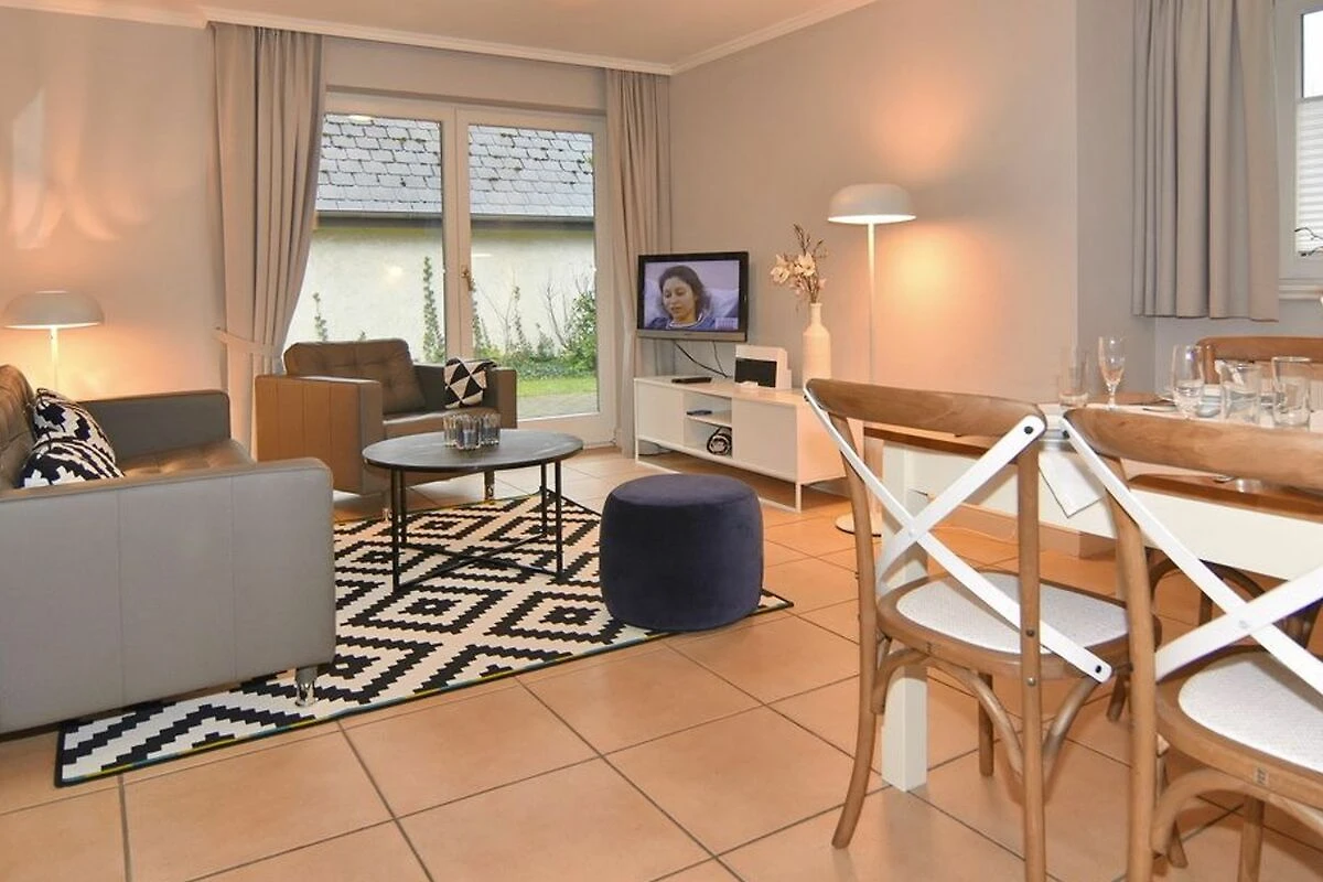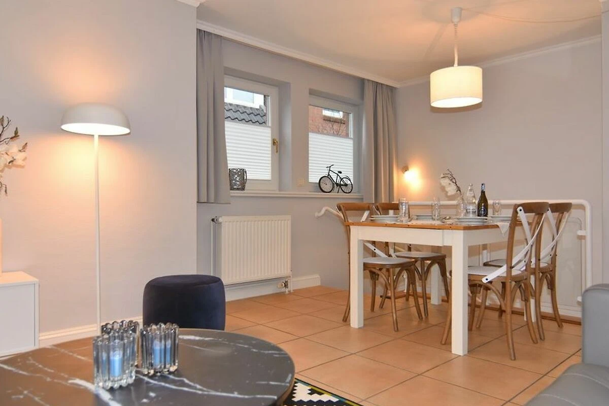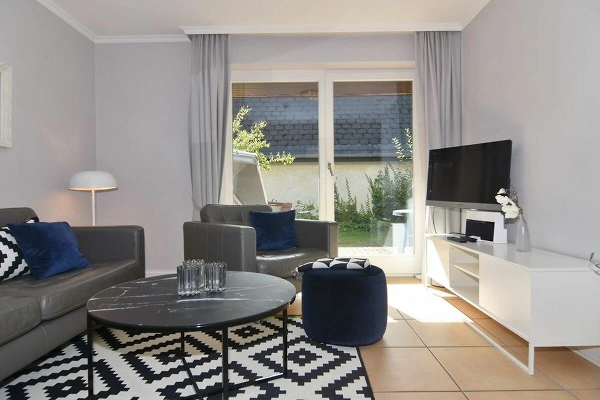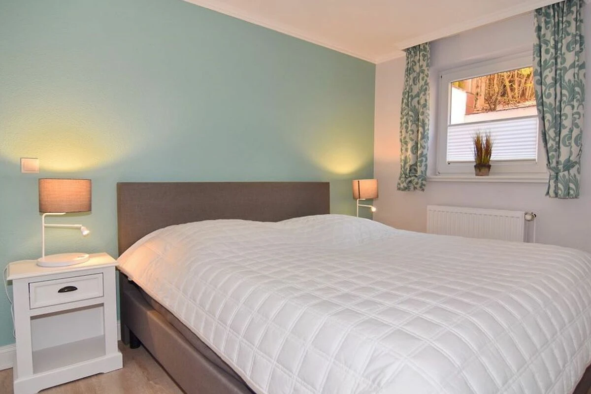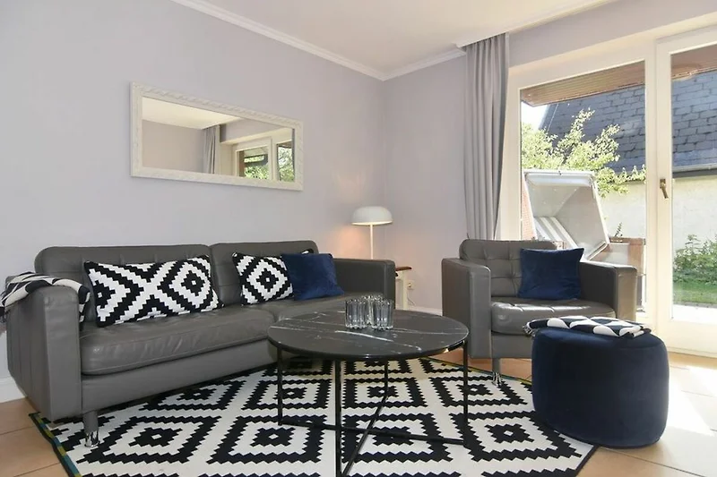 Schicke 3-Zimmer-Ferienwohnung mit Südterrasse im Haus Alma. Ca. 70m². EG: Wohnzimmer mit Couch und 2 Sesseln, Essplatz, Flat-TV, Stereo / CD / DVD. Separate Küche mit GS, Gäste-WC. UG: 2 Schlafzimmer mit Boxspringbetten (180*200), sowie 1 Duschbad/WC. Pkw-Stellplatz Nr. 3 kostenlos (bitte anmelden), Strandkorb (Apr.-Okt.), Nichtraucherwohnung, Tierhaltung verboten. Im Haus: Kostenlose Nutzung des Schwimmbades und der Sauna. Waschküche gegen Gebühr. W-Lan (ohne Gewähr). Bettwäsche und Handtücher sind zur Anreise aufgezogen!