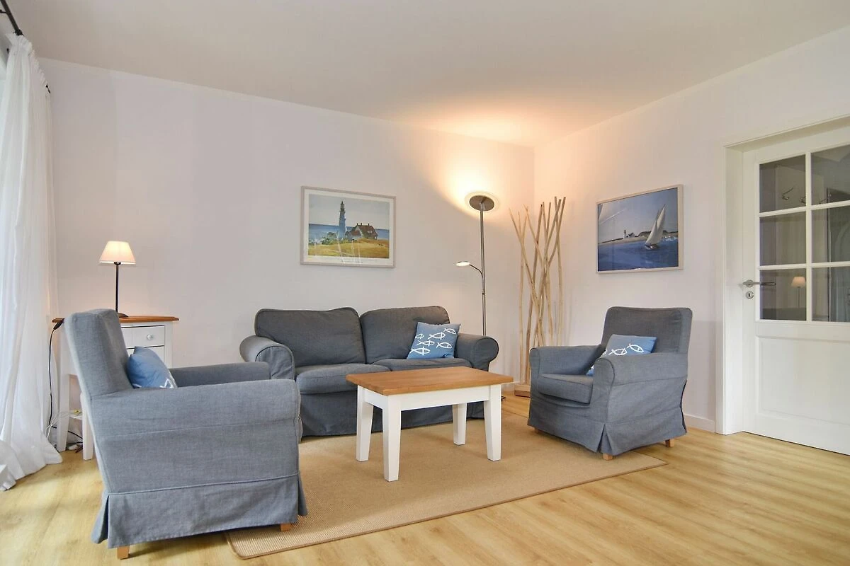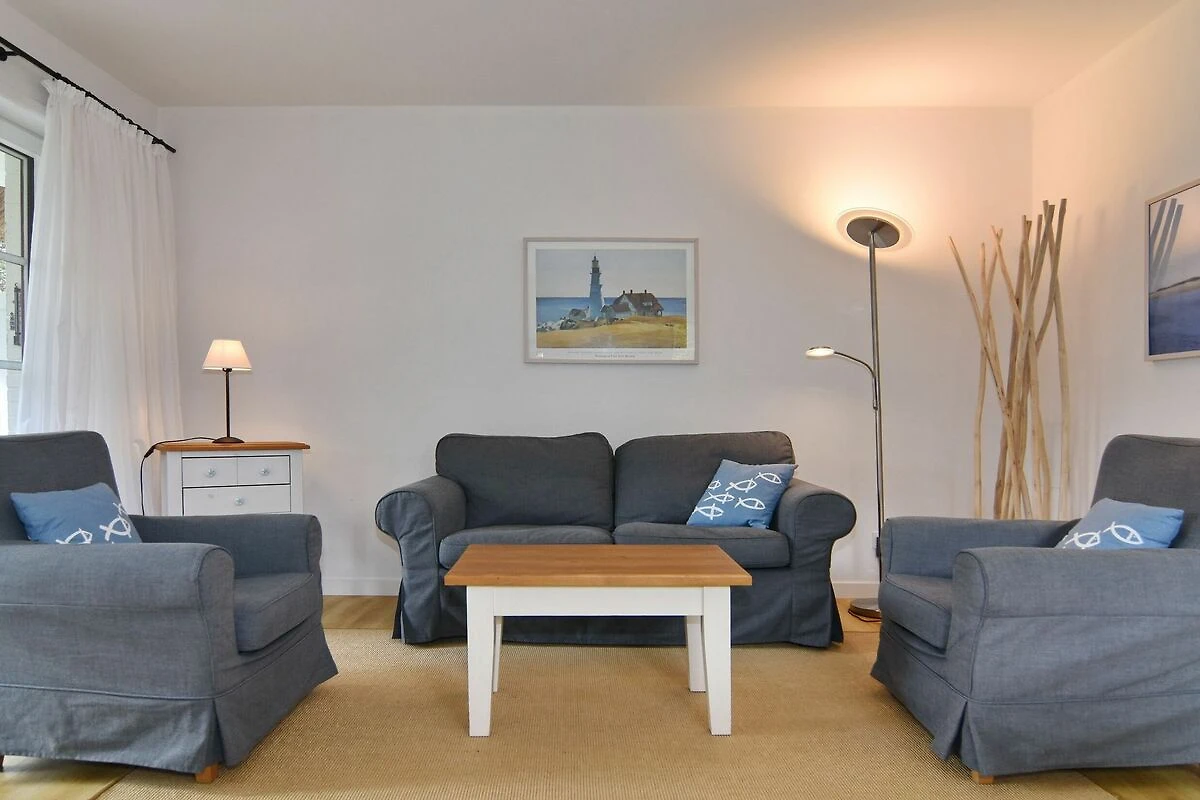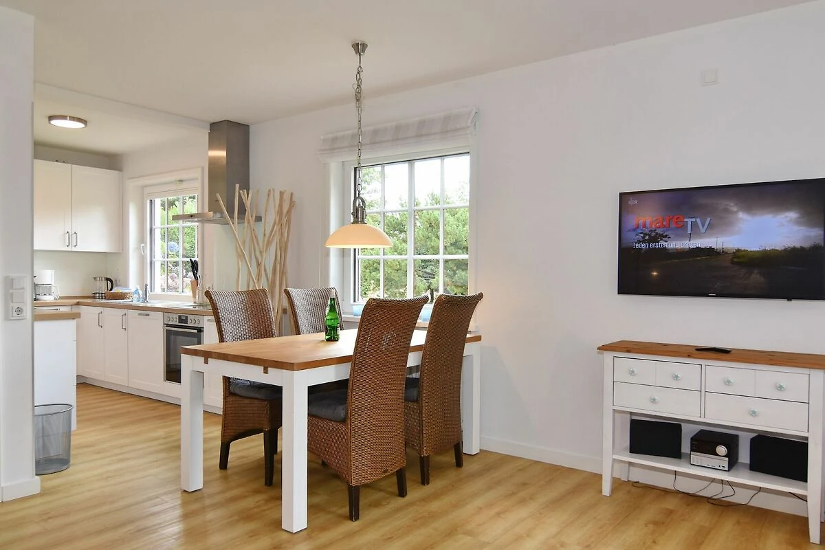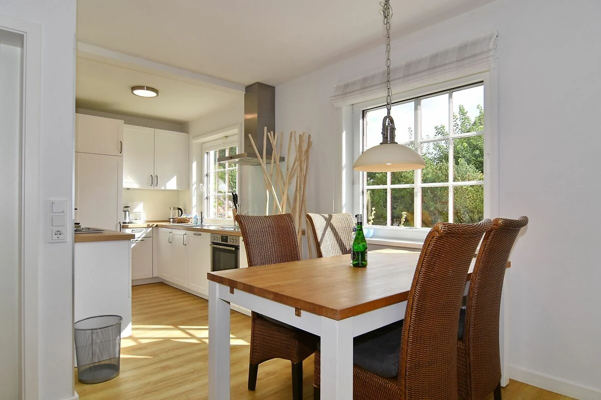 Ferienhaus (Endhausteil) unter Reet für max. 4 Personen. Ca. 100 qm. Nichtraucherobjekt! EG: Sonniges Wohnzimmer mit Essplatz und Sitzgruppe, Kabel-TV, DVD, Radio, Südterrasse mit Strandkorb, grosser Garten, offene Küche mit Backofen und Geschirrspüler, Duschbad und Gäste-WC. OG: 1 grosses Schlafzimmer mit Doppelbett, Kleiderschrank und Sitzgruppe, 1 Schlafzimmer mit 2 Einzelbetten und Einbauschrank. Beide Schlafräume sind mit Designboden ausgelegt. Duschbad/WC. Das Dachgeschoss wird nicht vermietet. Waschmaschine und Trockner, PKW-Stellplatz. Bettwäsche und Handtücher sind zur Anreise aufgezogen. Im EG ist Tierhaltung gestattet (nur Hunde, keine Katzen), bitte anmelden ( keine Kampfhunde). Grillen im Garten ist nicht statthaft! WLAN (ohne Gewähr). Mindestmietdauer 6 Übernachtungen!