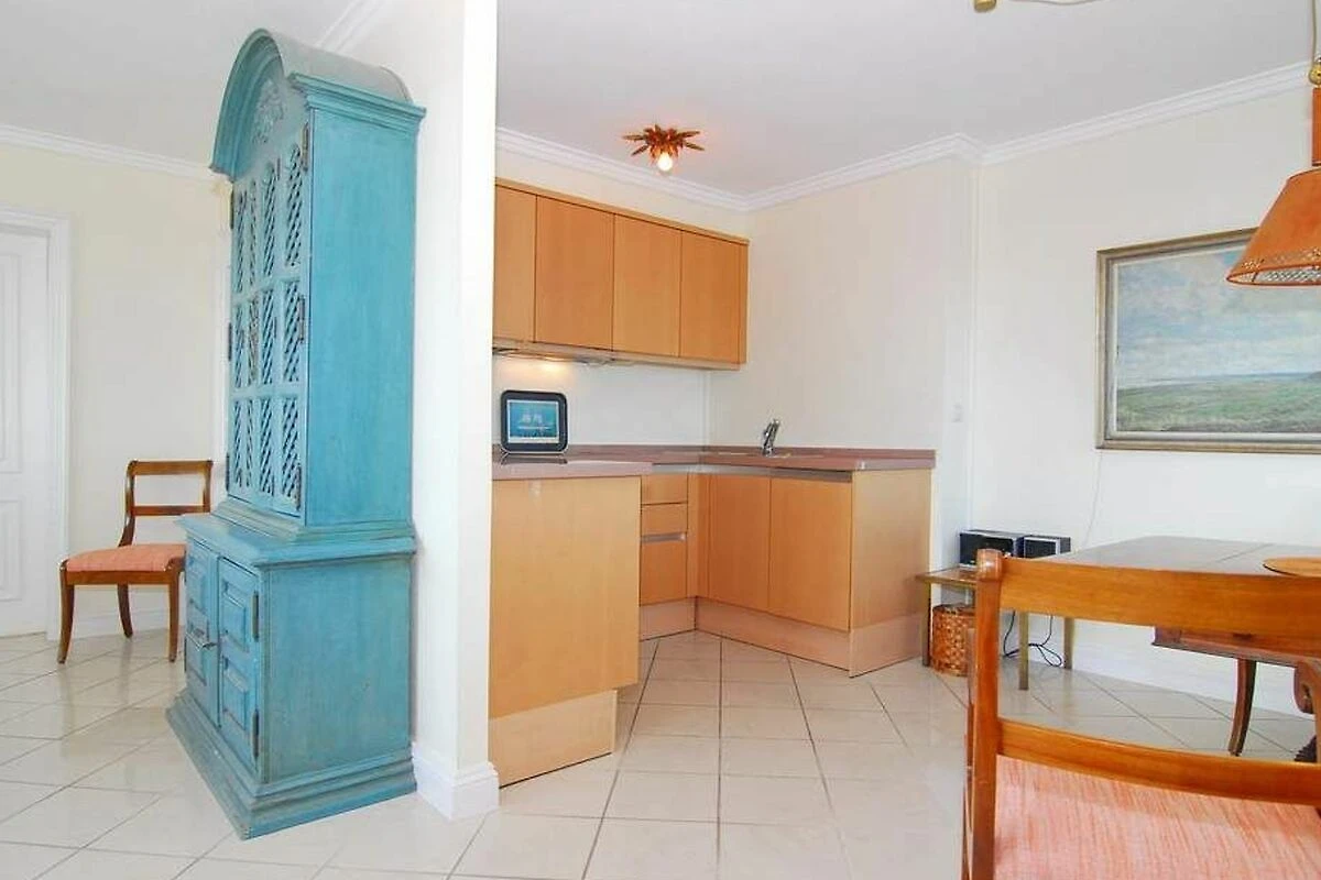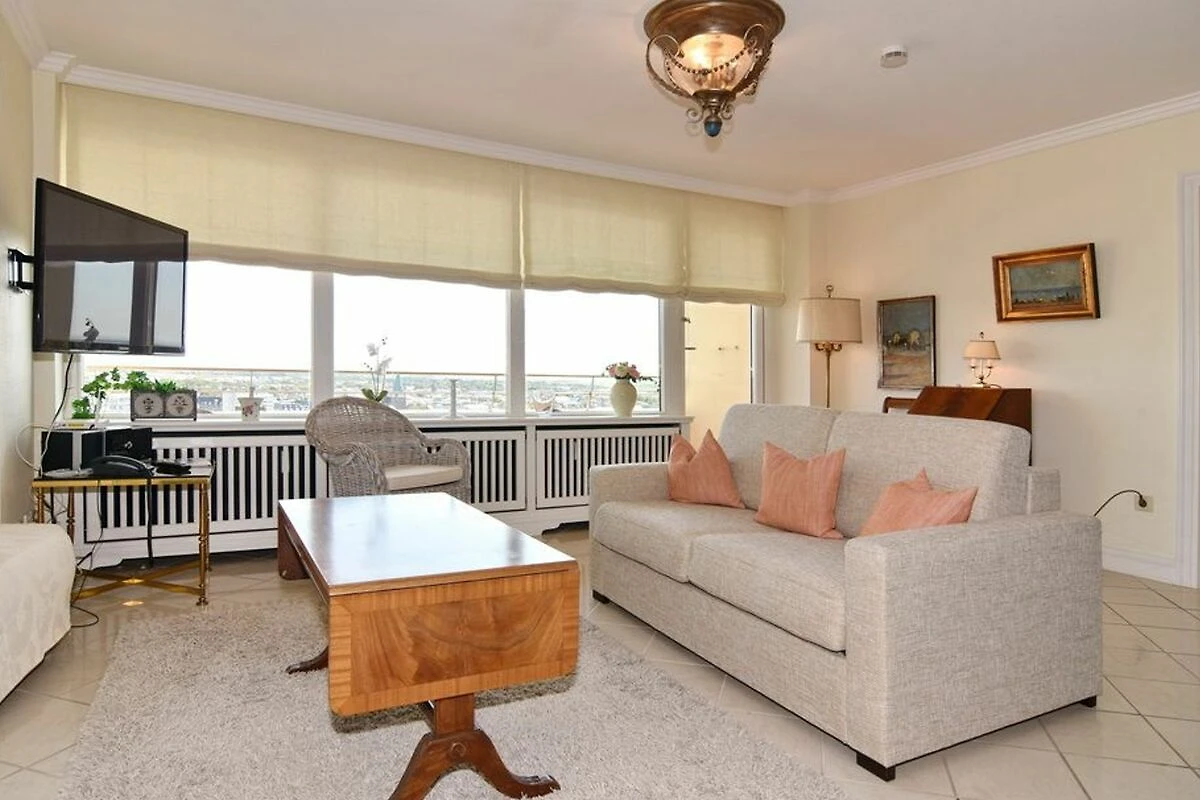 Gepflegte 2-Zimmer-Ferienwohnung im Haus Metropol, 11.OG, Nord-Ost-Ecke. Wohnraum mit Couch, Sessel und Schlafsofa, Kabel-TV, Radio, Telefon, WLAN (ohne Gewähr), Essplatz, Nordbalkon mit Meeresblick und Ostbalkon mit Blick über die Insel, Küchenecke mit Geschirrspüler und Mikrowelle, Schlafzimmer mit Doppelbett (2x90x200) und Ostbalkon, Duschbad/WC. Das Apartment ist gefliest, Rauchen und Tierhaltung ist nicht gestattet.PKW-Stellplatz/Garage kann kostenpflichtig gebucht werden. Bettwäsche und Handtücher sind zur Anreise aufgezogen.