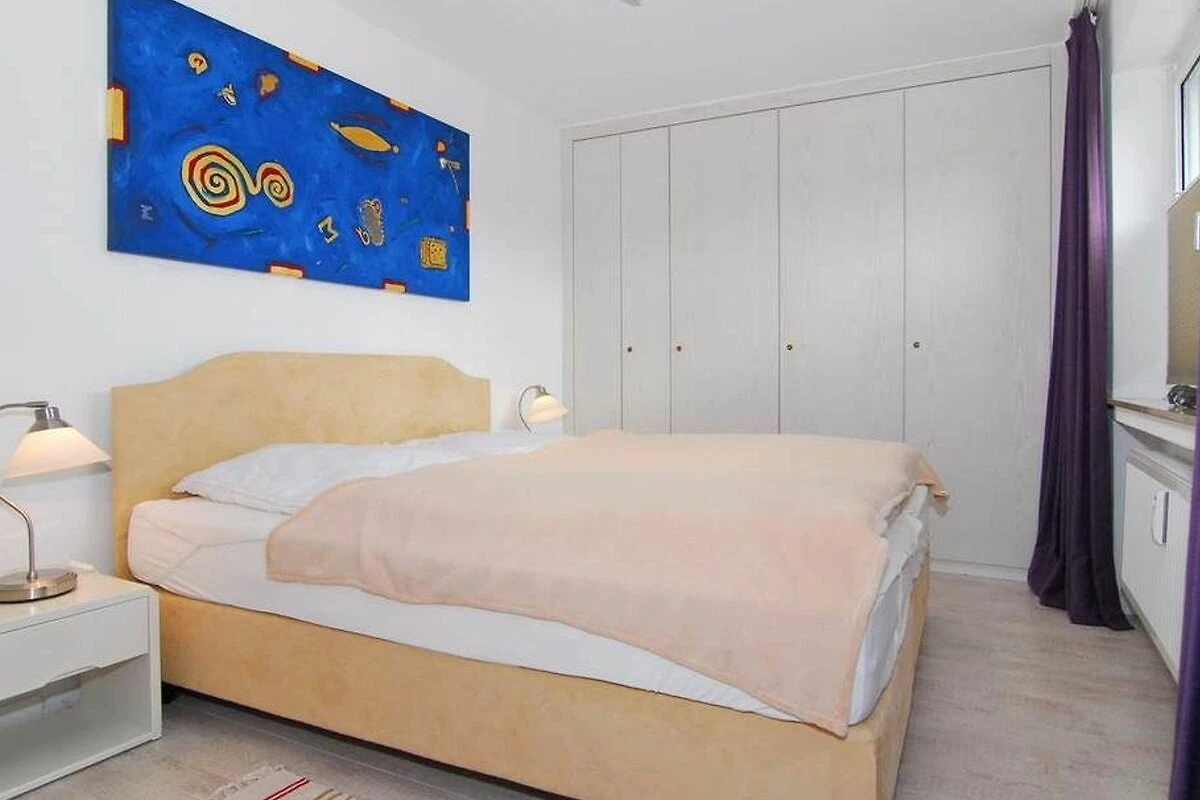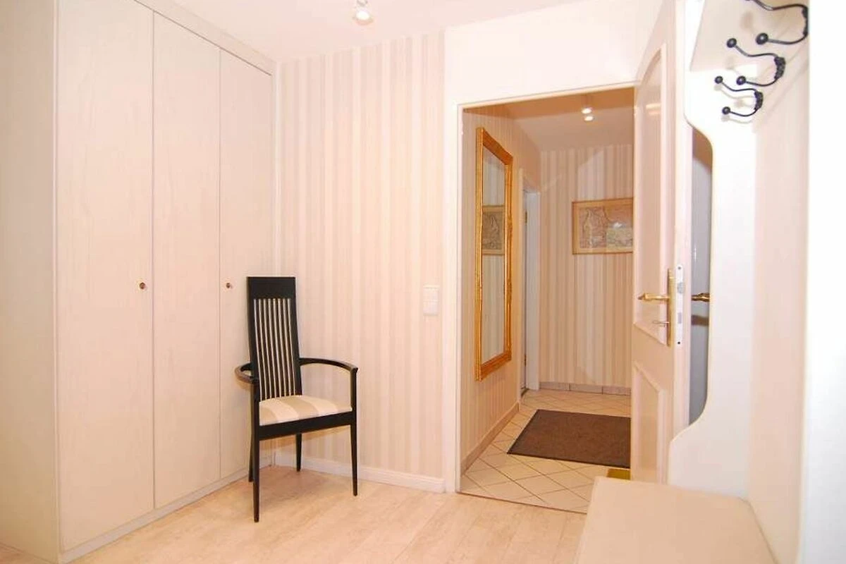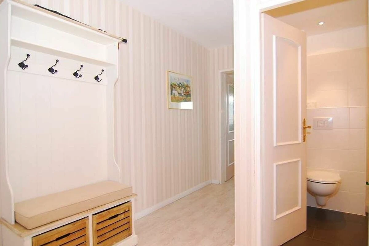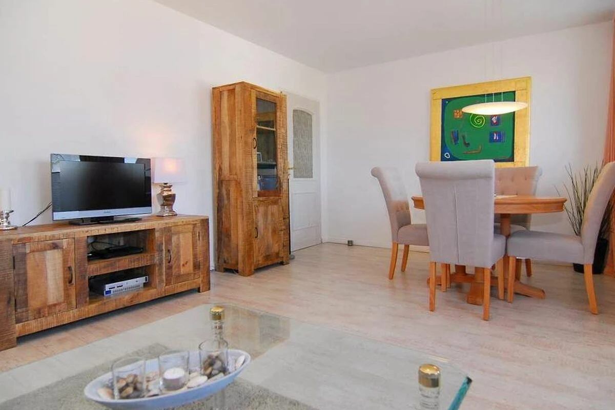 3-Zimmer-Ferienwohnung, ca. 65m², 1. OG, im Haus Undine. Nichtraucher-Whg. ![nbsp][nbsp]Wohnzimmer mit Eckcouch, Essplatz, Flat-TV, Stereoanlage mit Ipod-Station, Playstation 2, W-Lan, Westbalkon, separate Küche mit Geschirrspüler, Backofen und Nespresso-Maschine. 1 Schlafzimmer mit Doppelbett und Flat-TV (Hotelsafe vorhanden), 1 Schlafzimmer mit Doppelbett (160x200) und Flat-TV, Duschbad / WC mit Föhn. Tierhaltung ist nicht gestattet. Bettwäsche und Handtücher sind zur Anreise aufgezogen. Garagenstellplatz Nr. 39 inklusive (Garagenöffner bei Anreise im Büro Riel).