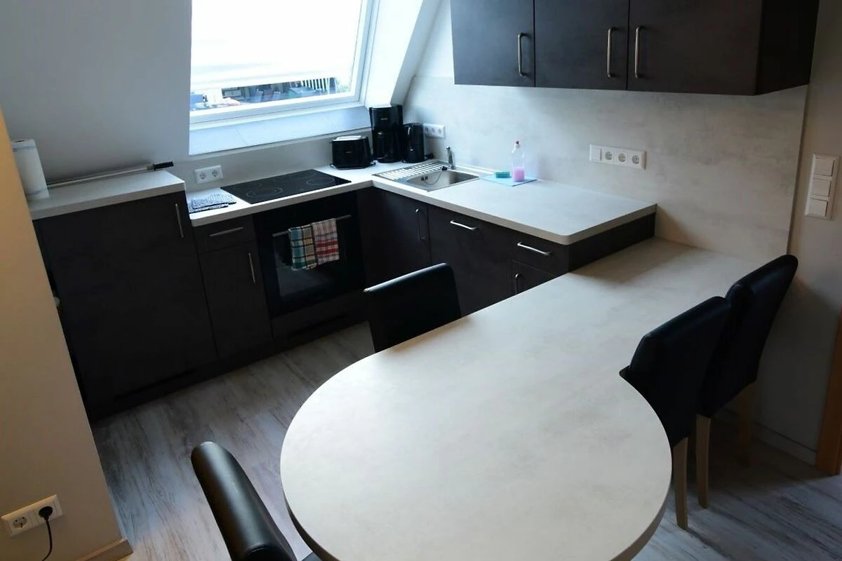 Die Einbauküche verfügt über alle wichtigen Geräte einschliesslich Elektroherd, Backofen, Kühlschrank mit Gefrierfach, Mikrowelle, Wasserkocher, Toaster und Kaffeemaschine. Ausreichend Geschirr und alle notwendigen Küchenutensilien sind ausreichend vorhanden.