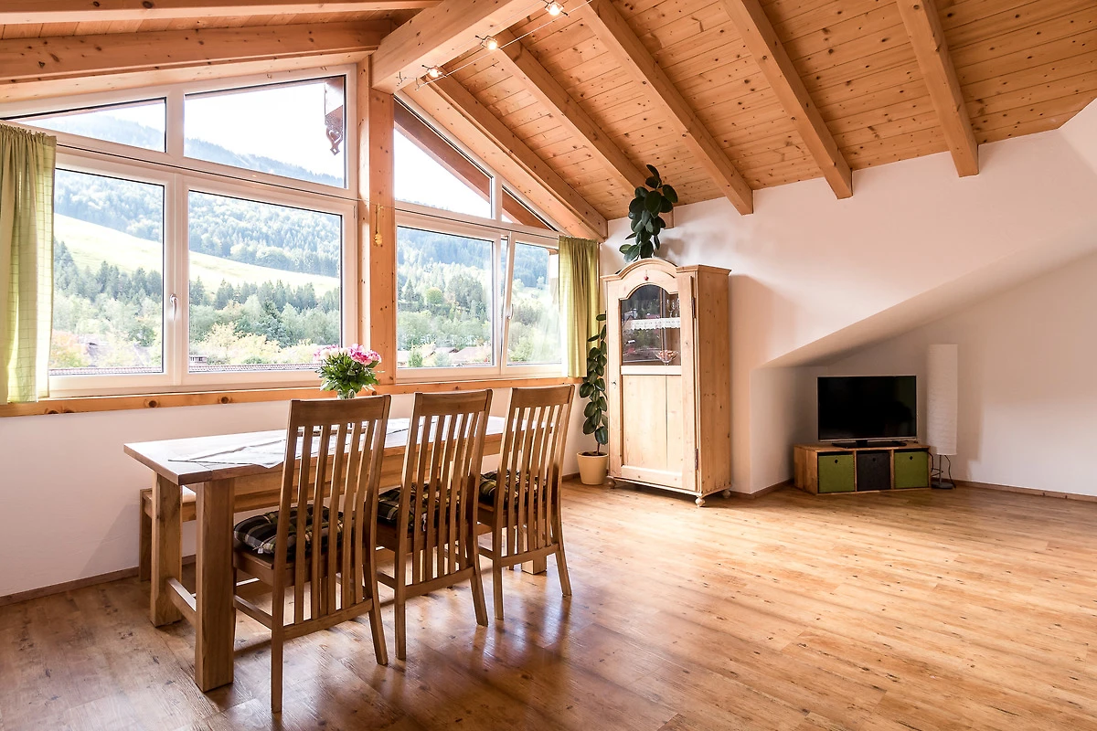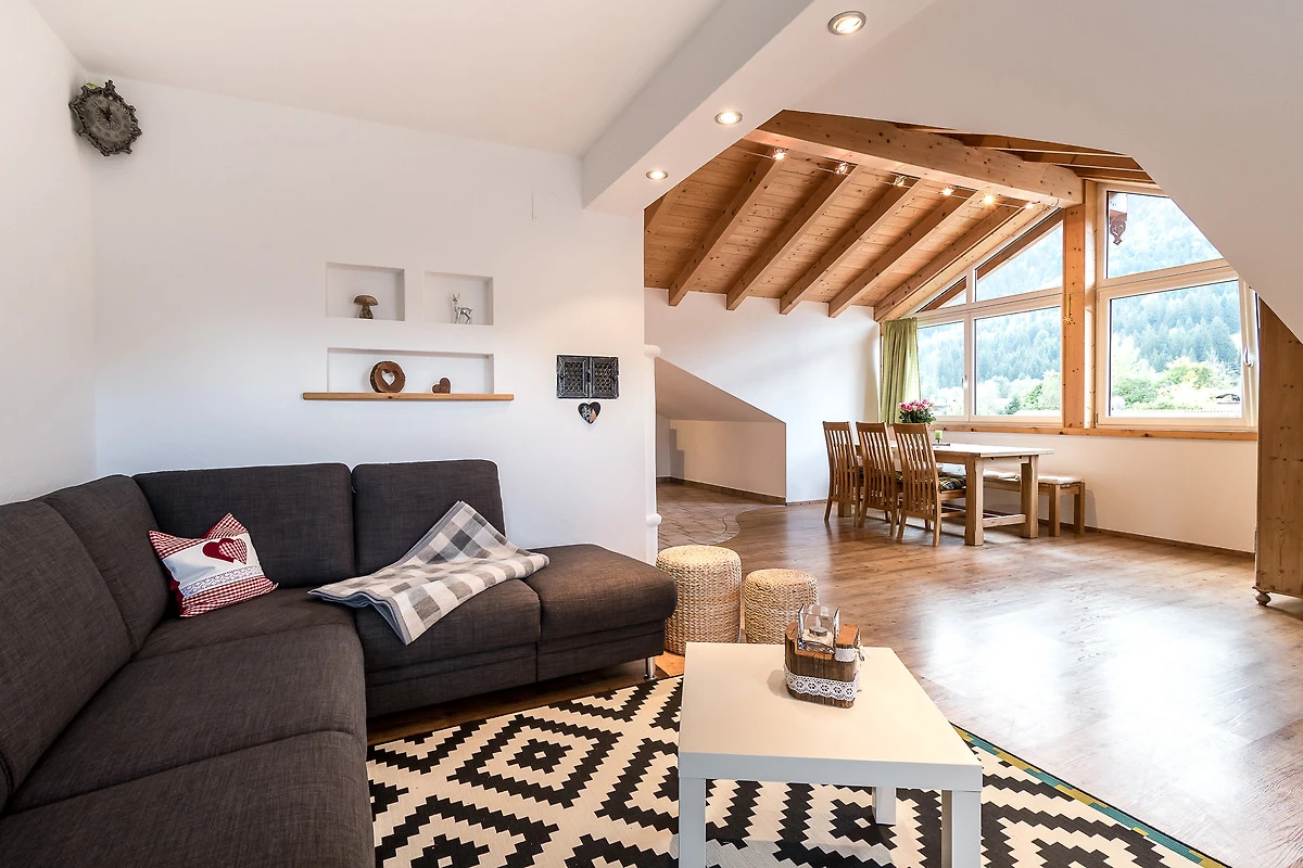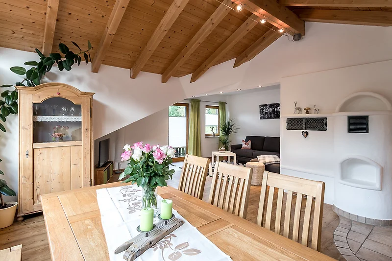 Ihr wohnt bei mir in meiner frisch renovierten luxuriösen und urig eingerichteten 80 qm Dachgeschosswohnung mit grossem Balkon. Freut euch auf einen gigantischen Ausblick aus der ca. 2 m grossen Fensterfront aus dem Speisezimmer Richtung Berg und Natur. Geniesst die Zeit in dem kleinen Wellness Bad mit Dusche und toller Eckbadewanne. Solltet ihr kochen wollen, habt ihr hier eine grosse Küche mit super Ausstattung zur Verfügung. Und das weitere Highlight im Winter ist der Kachelofen, der in Windeseile die Wohnung auf kuschelige angenehme Temperaturen bringt. Ich freue ich auf euch:-)