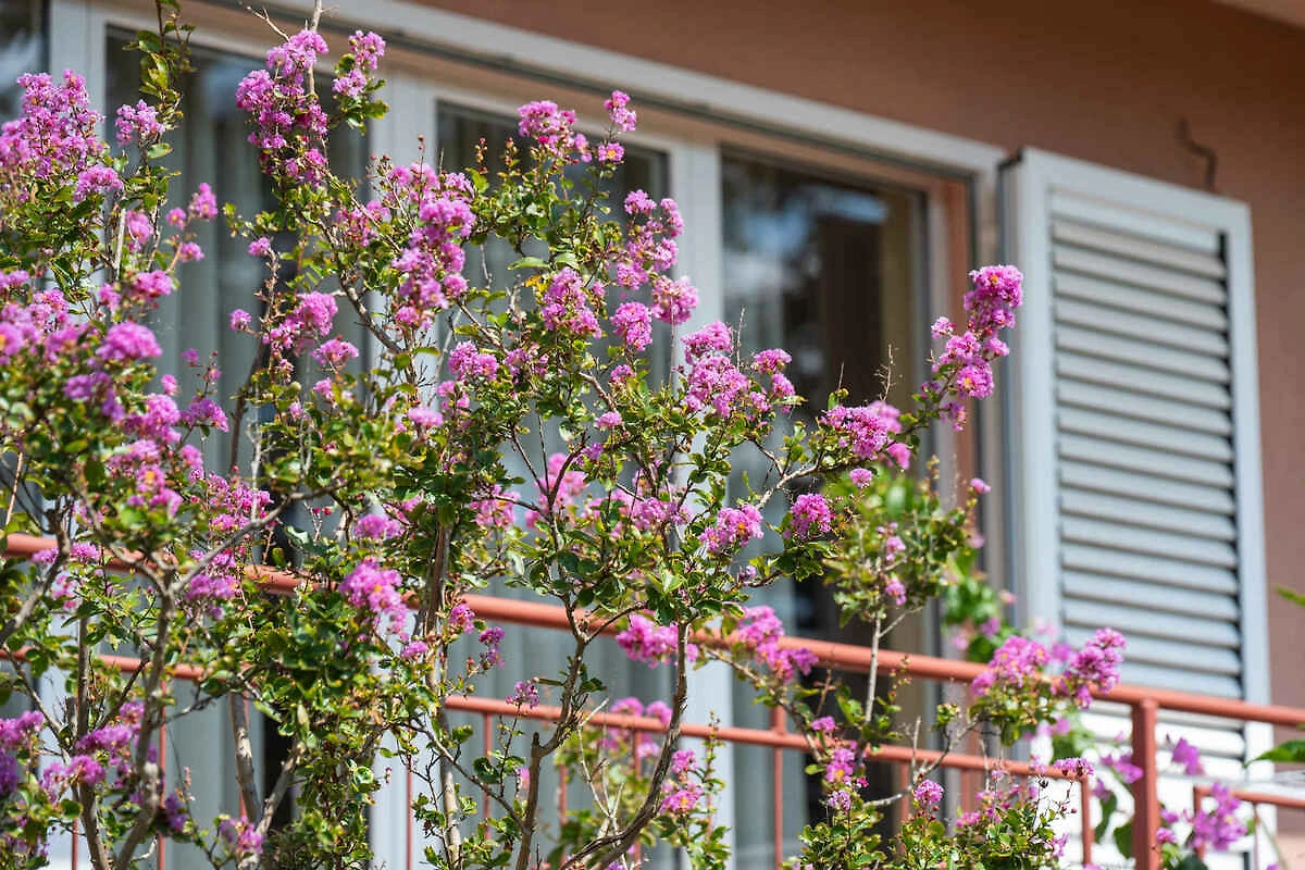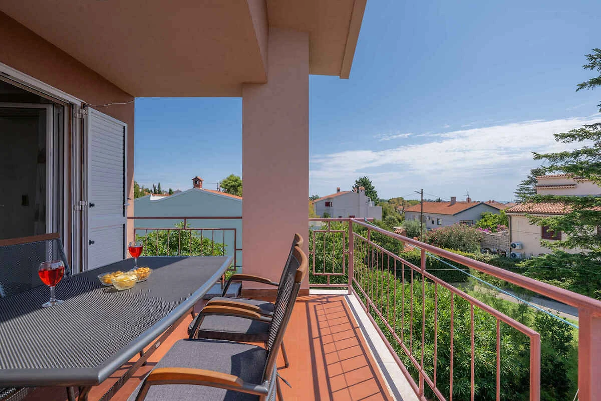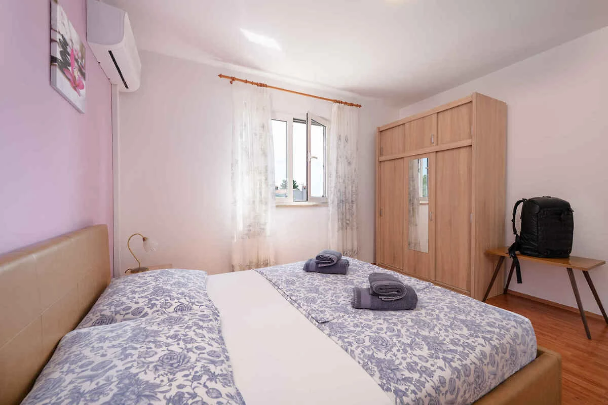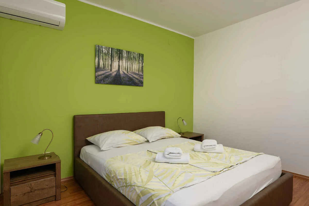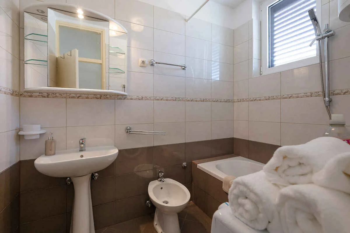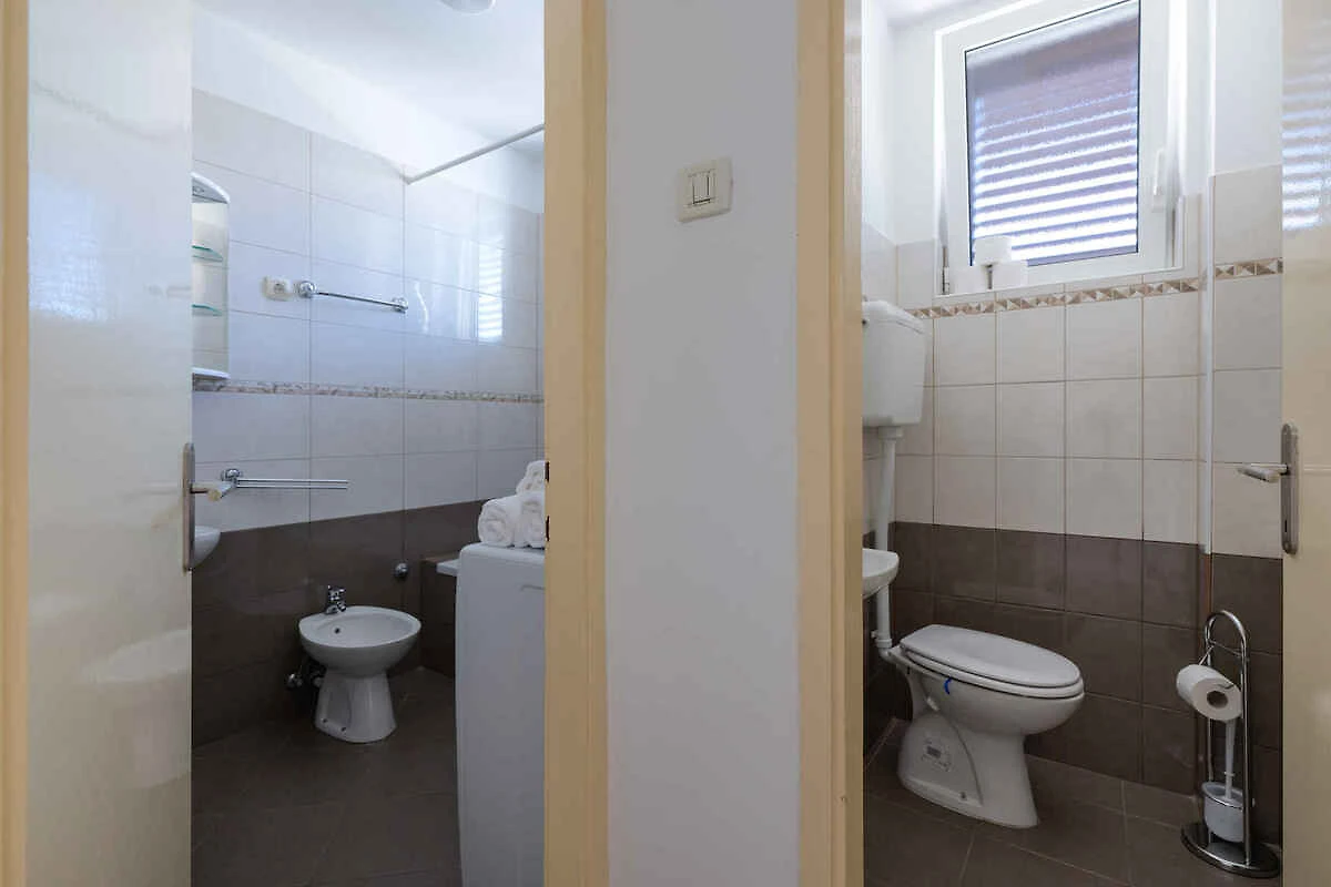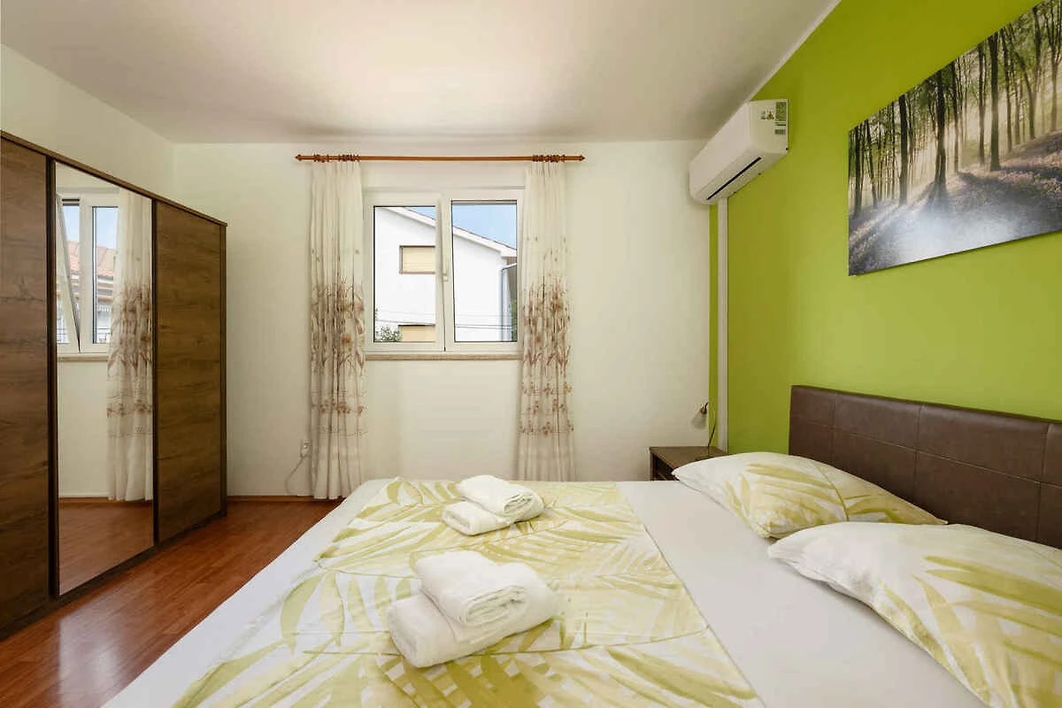 Medulin. Die Ferienwohnung befindet sich auf einem geschlossenen Gartengrundstück mit Wiese, Blumen, Sträuchern und Bäumen. Der Vermieter wohnt ständig im Haus, nutzt jedoch einen separaten Eingang. Die Zufahrt erfolgt über eine Nebenstrasse. Parkplatz (für 1 Pkw) auf dem Grundstück.