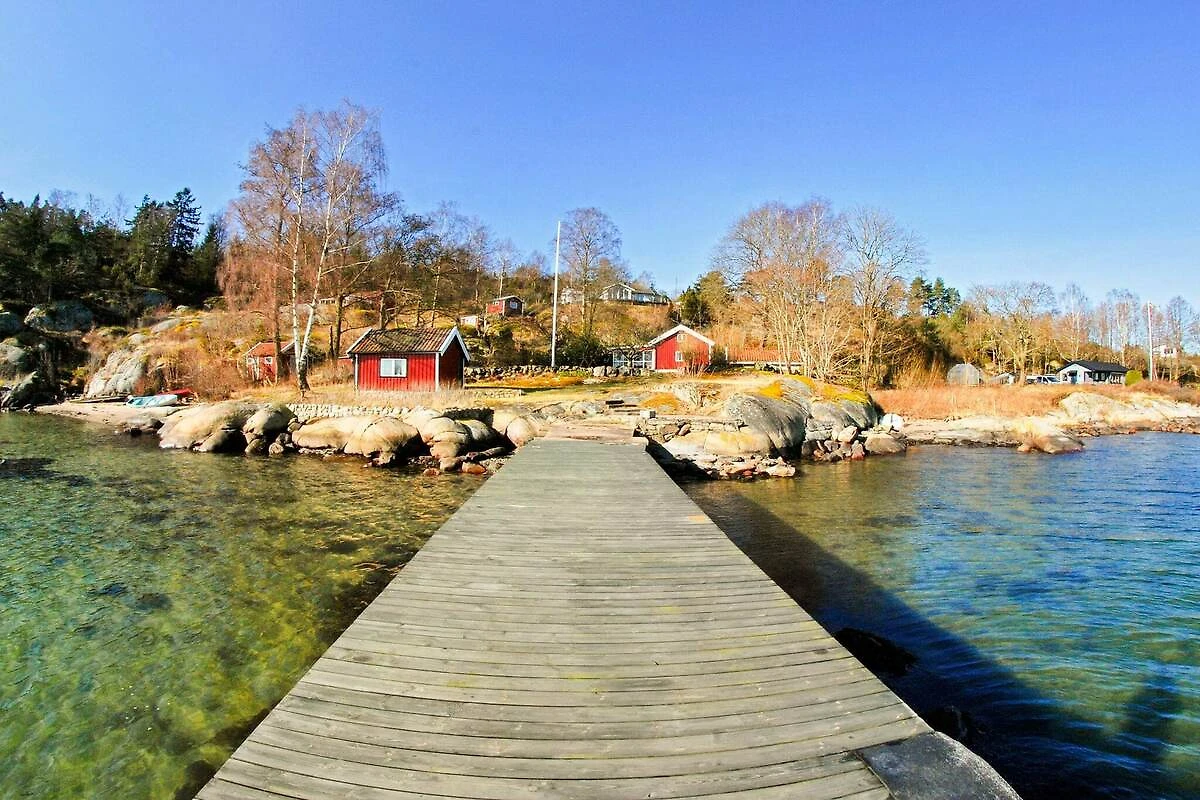 Willkommen in Ihrer eigenen kleinen Oase in Form dieses gemütlichen Ferienhauses auf Tjörn in Bohuslän, nur 20 m von Meer/Badesteg gelegen mit eigenem Steg und einblickfreier Rasenfläche. Hier können Sie ganz für sich den Badeurlaub genießen. Es erwarten Sie auch sehr schöne Sonnenaufgänge und lange Sommerabende mit dem spiegelglatten Meer vor dem Fenster. Vom Eingang geht es direkt in die schöne Küche mit Holzofen, Kühl- und Gefrierschrank, Herd mit Backofen, Dunstabzugshaube, Mikrowelle, Kaffeemaschine und Hochstuhl. Dahinter findet man ein geräumiges Wohnzimmer mit Sofa, Couchtisch, Esstisch mit Stühlen, Fernseher und Holzofen. Aus dem Fenster blickt man zum Grundstück, wo die Kinder spielen können, und weiter zu Steg und Küste am Horizont. Das Ferienhaus hat zwei Schlafzimmer; eines mit 180 cm breitem Doppelbett, das andere mit einem Etagenbett mit zwei 80 cm breiten Kojen. Über eine steile Leitertreppe erreichen Sie das geräumige Dachgeschoss des Hauses, wo sich zwei 80 cm breite Einzelbetten befinden. Außerdem gibt es im Haus ein WC mit Toilette und Waschbecken. Die einzige Dusche befindet sich jedoch außen an der Hauswand. Zur Verfügung steht auch eine große, verglaste Veranda mit Esstisch, Stühlen und Sesseln zum Sitzen und Schiebetüren. Von hier hat man einen herrlichen Ausblick zum Meer! Auf dem Grundstück befindet sich zudem ein kleiner Annex mit einem Etagenbett mit einer 140 cm breiter Liegefläche unten. Es gibt auch eine kleine Küchenzeile, aber kein Wasser im Annex. Für die Kinder gibt es im Außenbereich ein kleines Spielhaus mit Spielzeug. Zum Haus gehört ein Ruderboot damit Sie auf den Hakefjord hinausfahren können, um zu angeln oder einen neuen Strand zu entdecken. Einige Schwimmwesten sind vorhanden. Auf dem Grundstück steht ein Mähroboter. Stellen Sie sicher, dass sich draußen kein Abfall befindet, an dem er herumkauen kann, und berühren Sie ihn bitte nicht. Das Haus verfügt über drei abgegrenzte Parkplätze. KEINE VERMIETUNG AN JUGENDGRRUPPEN ERWÜNSCHT! Ein gut sortiertes Lebensmittelgeschäft finden Sie im 1 km entfernten Myggenäs. Ein kleines Dienstleistungsgeschäft und eine Pizzeria befinden sich ebenfalls in der Nähe. Dienstleistungen und Unterhaltungsmöglichkeiten in Stenungsund mit einem großen Einkaufszentrum  sind ebenso erreichbar wie der Hafenort Skärhamn mit dem bekannten Aquarellmuseum für nordische zeitgenössische Kunst. Zur Hafenstadt Göteborg mit dem bekannten Vergnügungspark Liseberg sind es ca. 55 km.