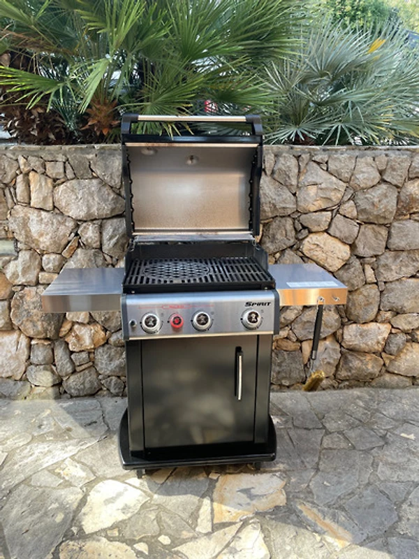 Ein grosser Tisch für 10 Personen und ein Weber Gasgrill sind dort vorhanden.