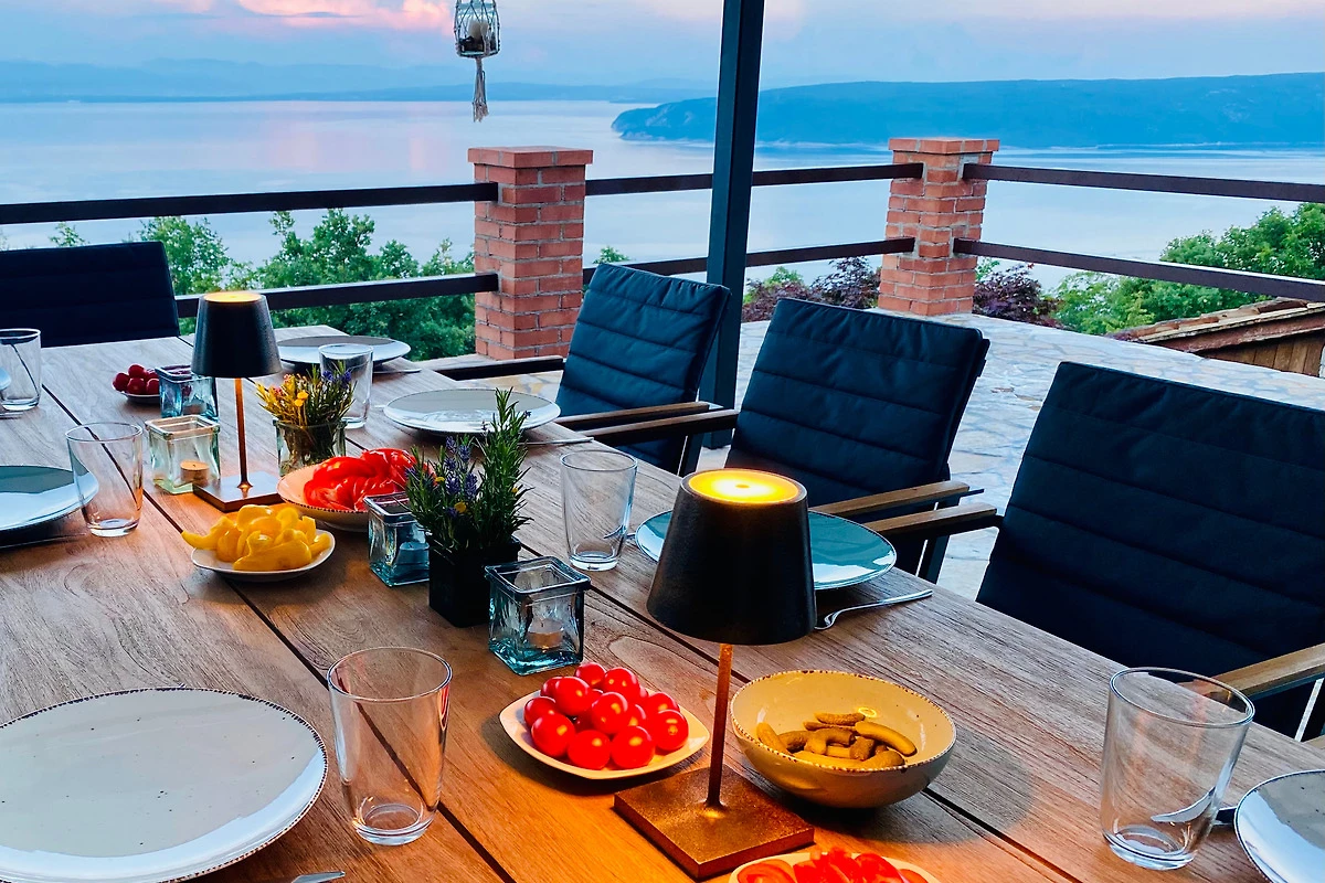 Die Villa liegt im alten, pittoresken Küstenort Sveta Jelena, absolut ruhig und mit einzigartigem Blick auf die Kvarner Bucht und die Inseln Cres und Krk. Hinter dem Haus erhebt sich das Učka Gebirge mit zahlreichen Wander- & Fahrradwegen - ein Paradies für Aktivurlauber!