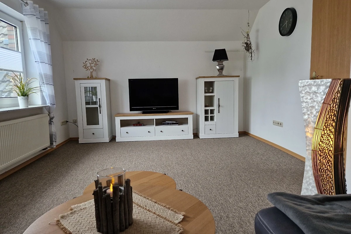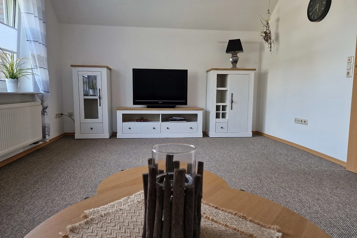 In unserer Ferienwohnung erwartet Sie ausserdem eine voll ausgestattete Küche mit Backofen, Kühlschrank, Ceran-Kochfeld und gemütlicher Essecke. Im Wohnzimmer läd die Couchgarnitur mit Couchtisch zum gemütlichen Verweilen ein und verschiedene indirekte Lichtquellen sorgen für behagliche Stimmung. Ein TV Flatscreen ist ebenso vorhanden, wie ein Wohnzimmerschrank. Die Fenster der Ferienwohnung Renken sind grösstenteils mit Fliegengittern und Jalousien, bzw. Verdunklungsrollos versehen und sorgen so für noch mehr Komfort. Dank vieler Ablageflächen, einer gut sortierten Gläserauswahl und liebevoll ausgewählter Dekorationen fühlen Sie sich schnell wie zu Hause. Einem angenehmen Aufenthalt steht nun nichts mehr im Wege.