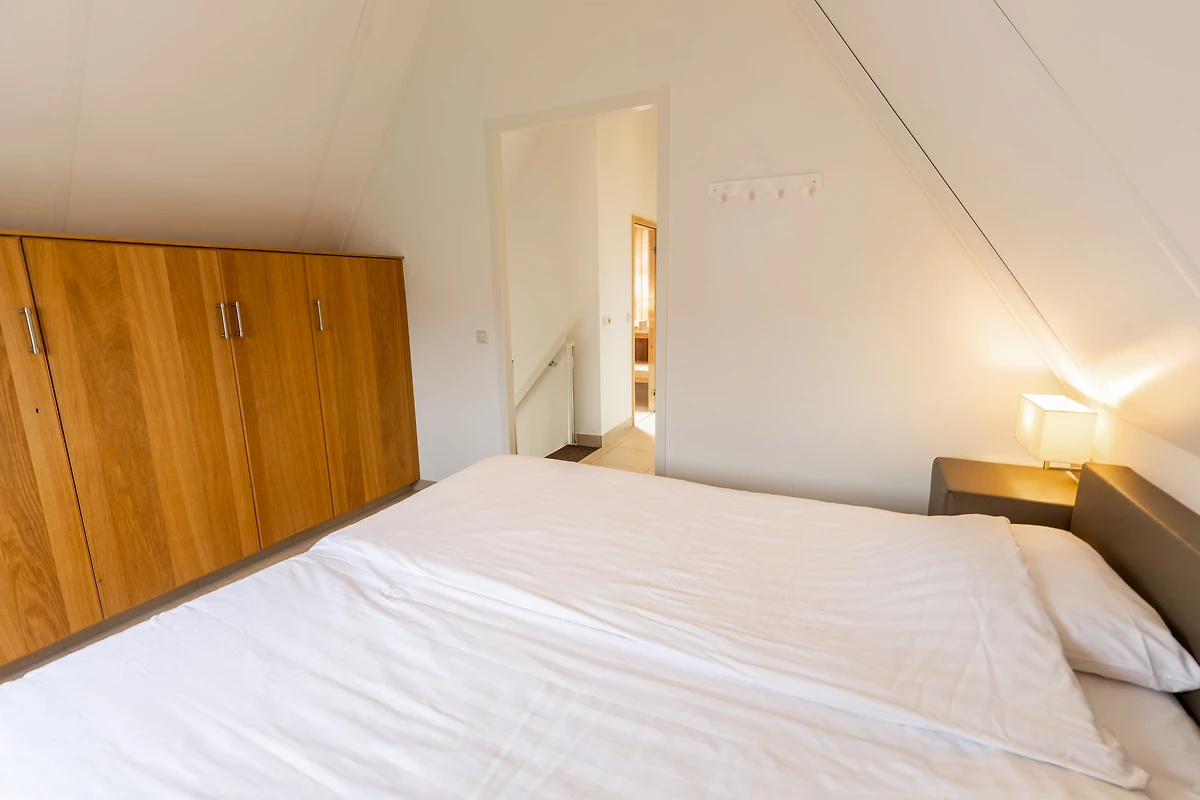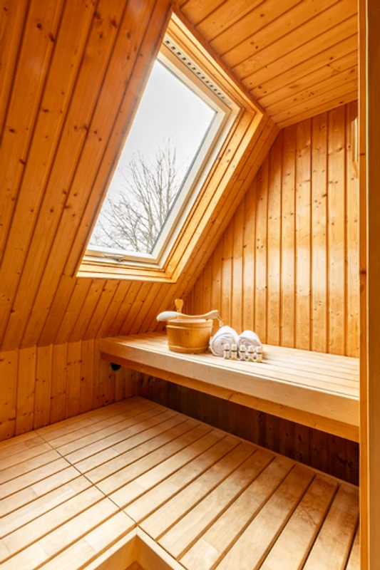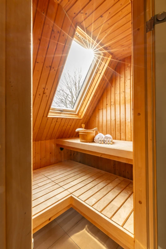 Im Obergeschoss finden Sie zwei stimmungsvolle Schlafzimmer, die jeweils für eine erholsame Nachtruhe eingerichtet sind. Der Wellnessbereich auf dieser Etage ist das absolute Highlight Ihres Aufenthalts. Lassen Sie alle Anspannung im Whirlpool hinter sich, entspannen Sie vollständig in der traditionellen Sauna und geniessen Sie das ultimative Urlaubsgefühl. Ein zusätzliches WC und ein Waschbecken vervollständigen diese Etage.