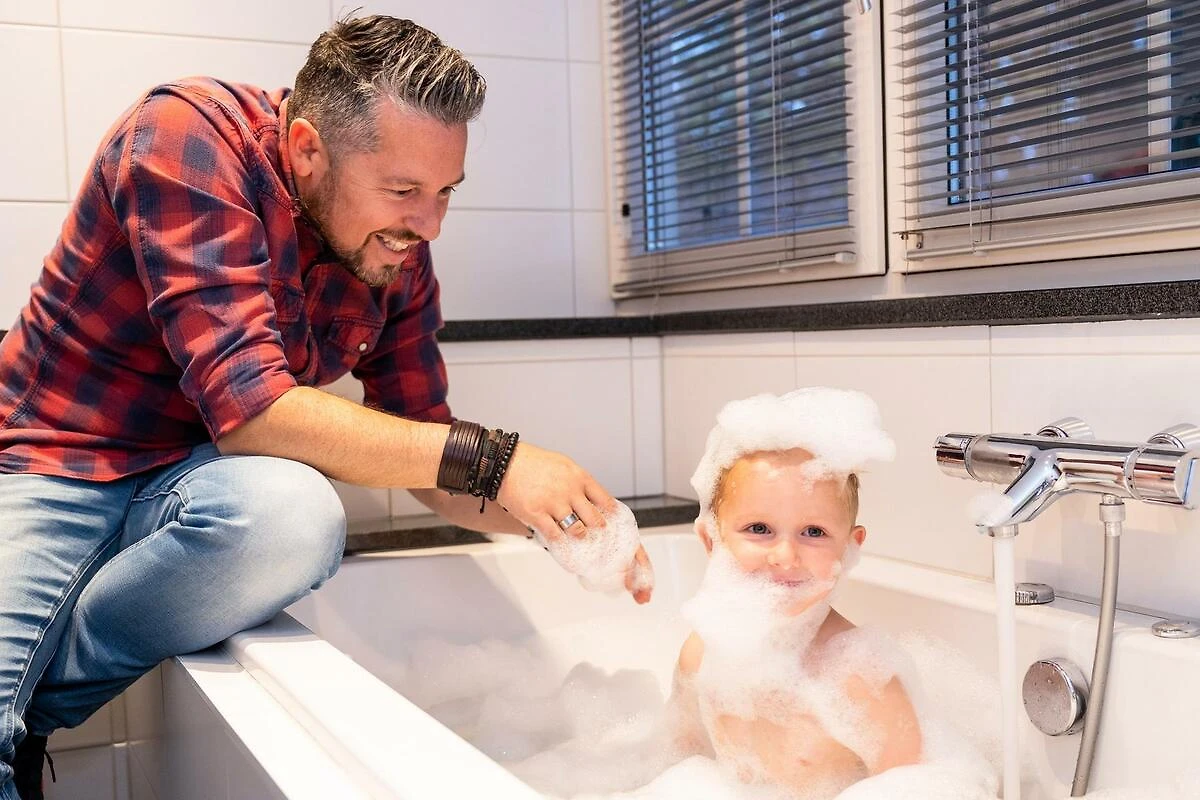 Unser luxuriöses Wellnesshäuschen: genossen von der Sauna und der Badewanne, dem Raum, den dieses Haus bot, und der schönen Küche. Und wow, was für ein großes Sofa! Superpraktisch mit Netflix und ganz einfach über WhatsApp zu kommunizieren.