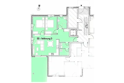 Sehr schöne sowie helle 3 - Zimmer-Ferienwohnung ca. 85 qm im Erdgeschoß. Außenrollläden.