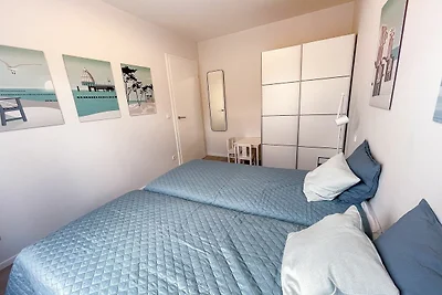 Diese Ferienwohnung liegt im Erdgeschoss, in Süd-West-Lage. Der Strand, der nächste Bäcker und die Promenade mit ihren zahlreichen Cafés, Restaurants und Geschäften ist fußläufig in nur wenigen Minuten zu erreichen.