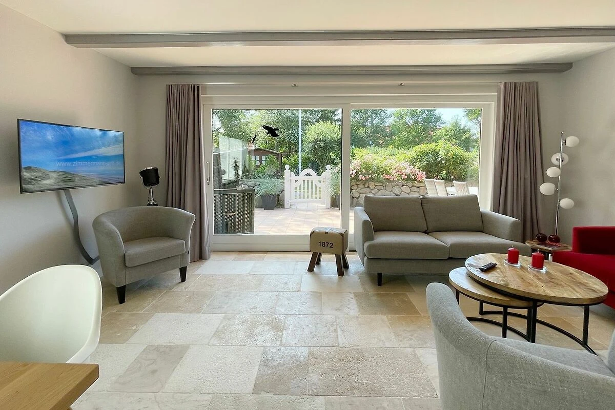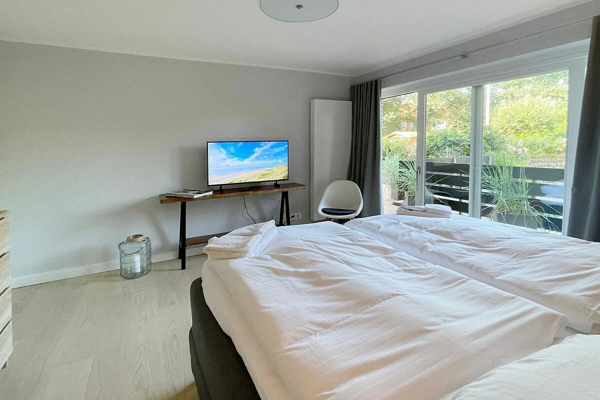 Die grosszügige komplette ebenerdige Nichtraucher-Ferienwohnung Goede Tiid bietet alles um eine Gute Zeit auf Sylt zu verbringen. Diese befindet sich in Tinnum, an der Ortsgrenze zu Westerland, so dass der Weg zur Westerländer Innenstadt nicht allzu weit ist und auch die Tinnumer Wiesen mit Rad und Wanderwegen gut zu erreichen sind.