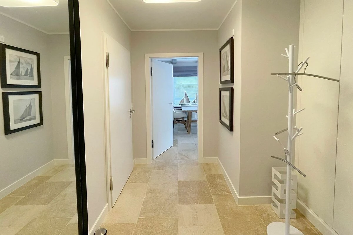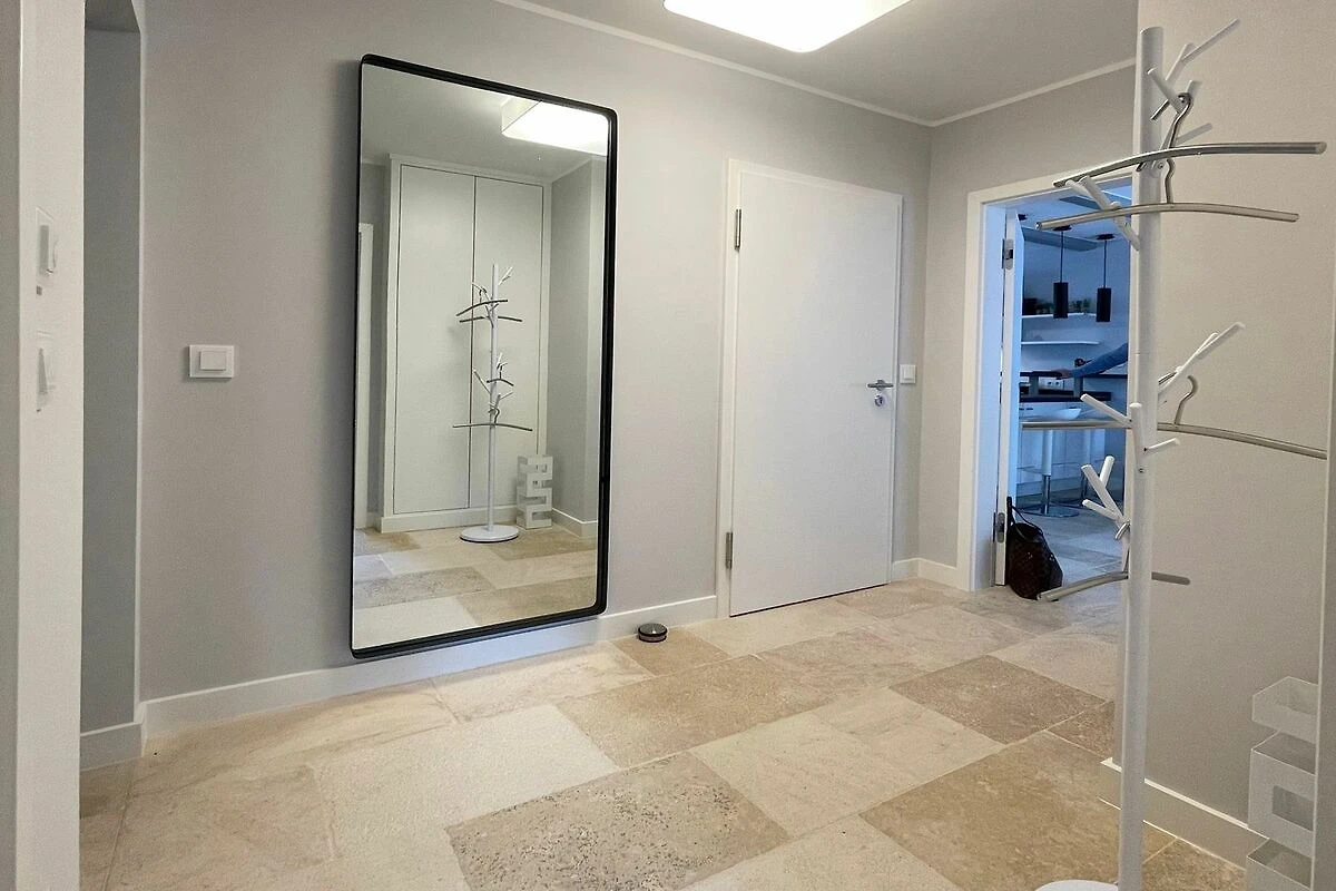 Zur Wohnung gehört ein PKW-Stellplatz vor der Garage, in der Sie auch Ihre Räder abstellen können. Von der eigenen Terrasse haben Sie Zugang zum Garten und zu einem zusätzlichen Raum mit Waschmaschine und Trockner, die Ihnen zur alleinigen Nutzung zur Verfügung stehen. Hier befindet sich auch die Sauna zu alleinigen Nutzung. Die Ferienwohnung kann mit 4-5 Erwachsenen und 1-2 Kindern ( maximal 6 Personen ) belegt werden.