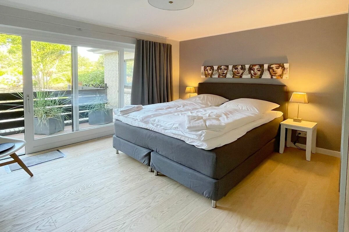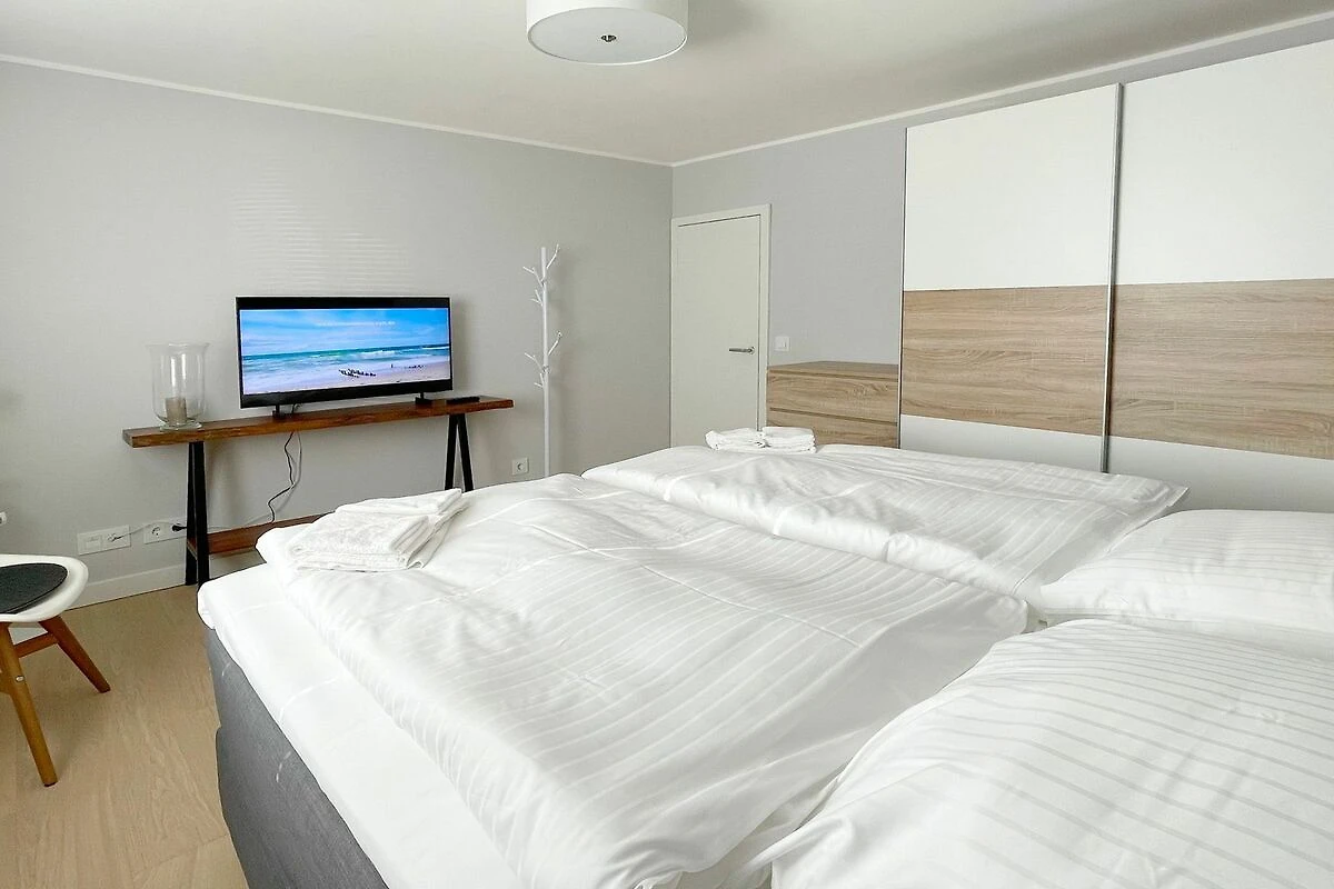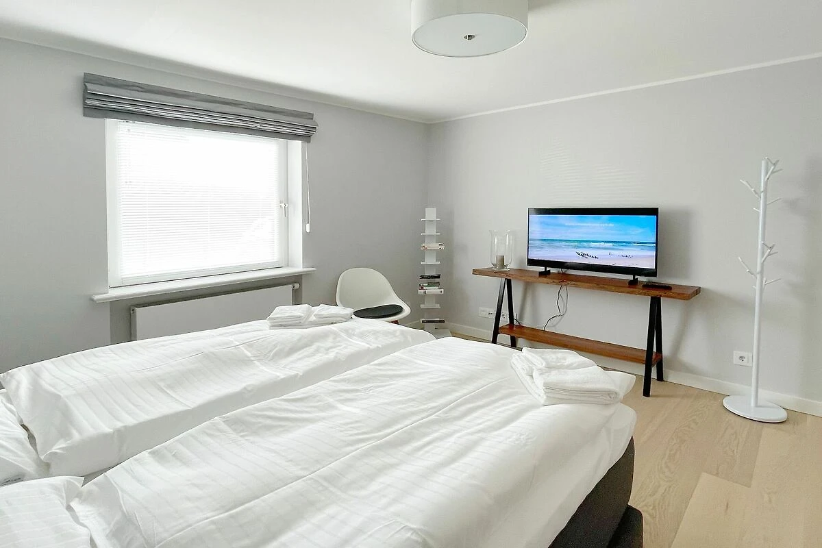 2 grosse Schlafzimmer mit Doppelbetten jeweils mit TV, 2 kleine Schlafzimmer für jeweils eine Person.