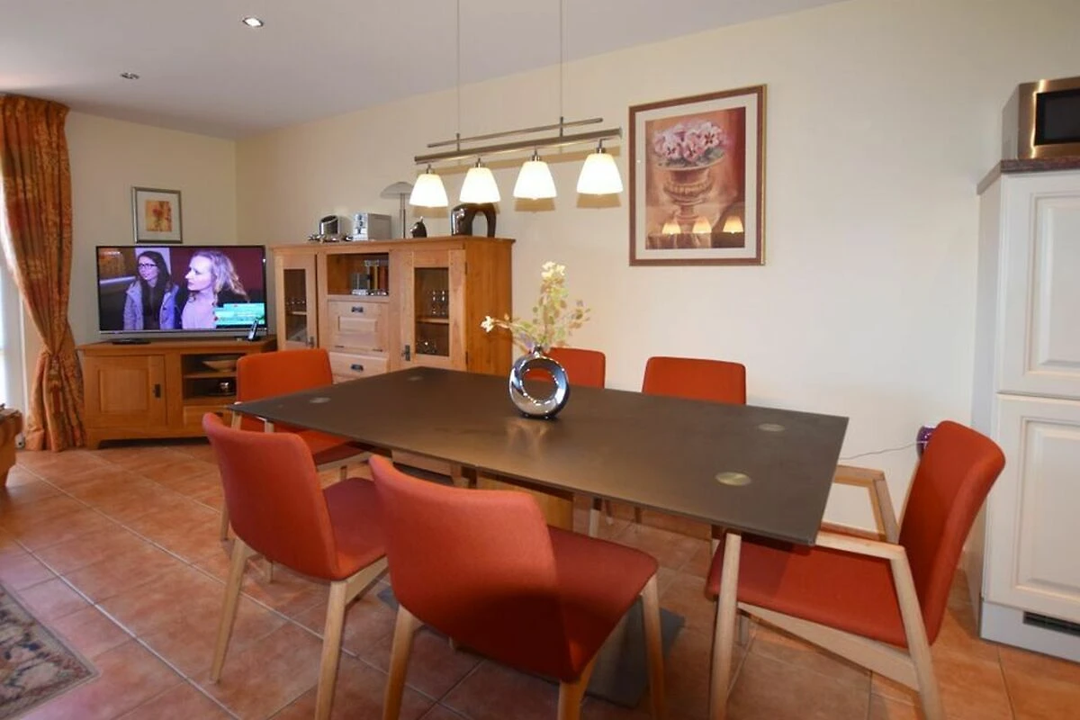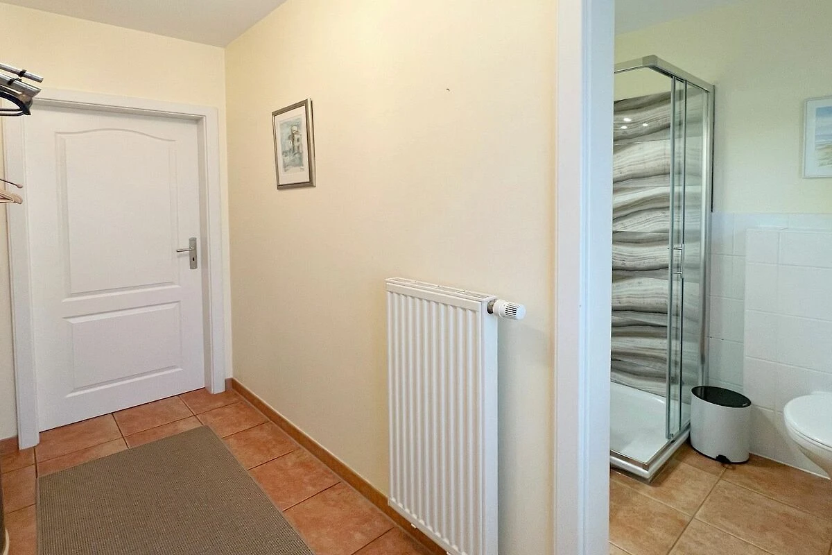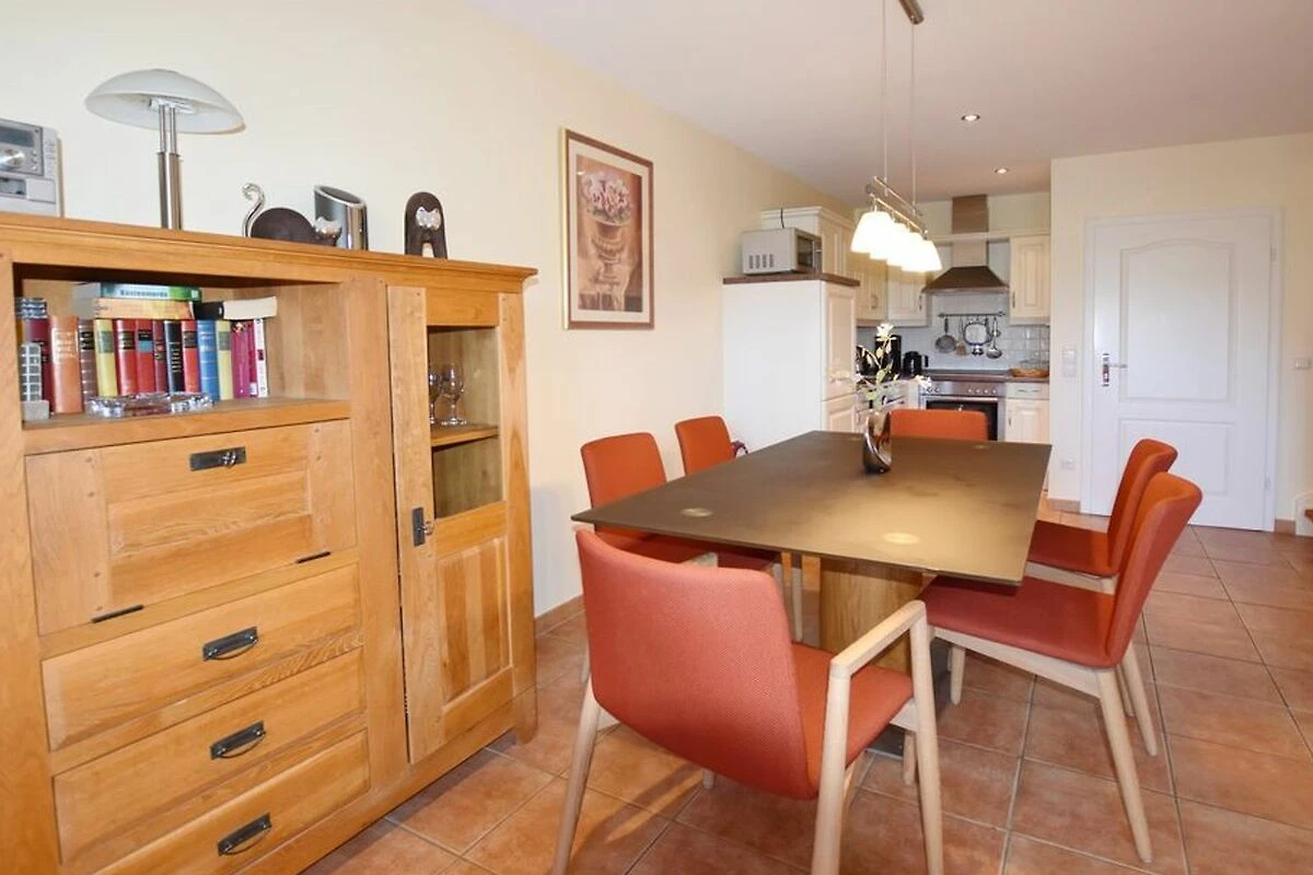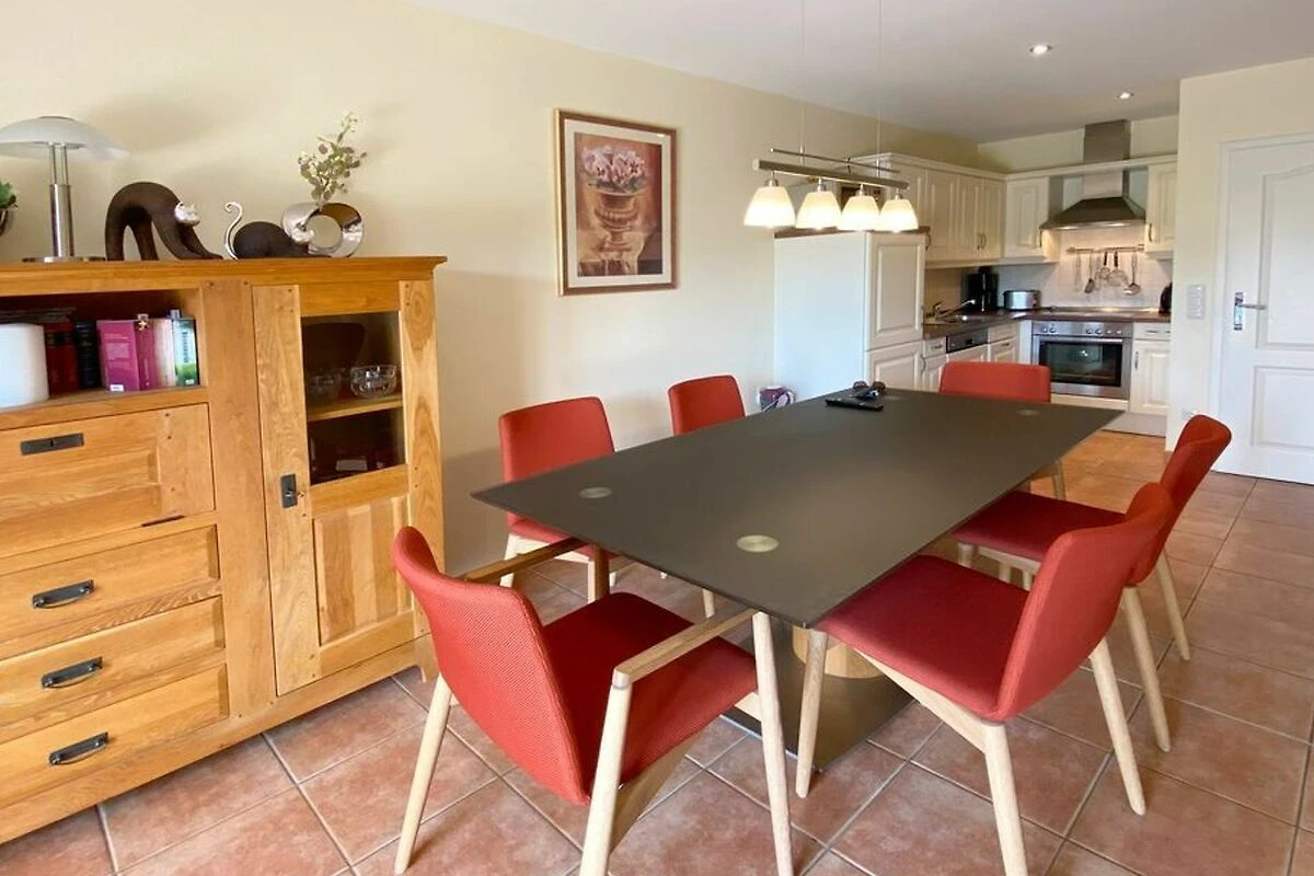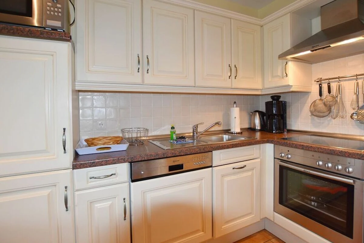 Ferienhaus (EG/OG/SB) mit Terrasse in zentraler und strandnaher Lage Westerlands, Wohnzimmer mit Sitzgruppe und Essecke, Kaminofen, Fernseher (Smart-TV ), offene Küche mit Geschirrspüler, Backofen und Mikrowelle, 2 Duschbäder, 3 Schlafzimmer für je 2 Personen, Waschmaschine und Trockner, 1 PWK-Stellplatz.