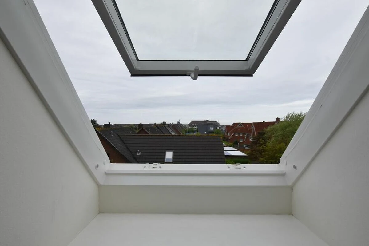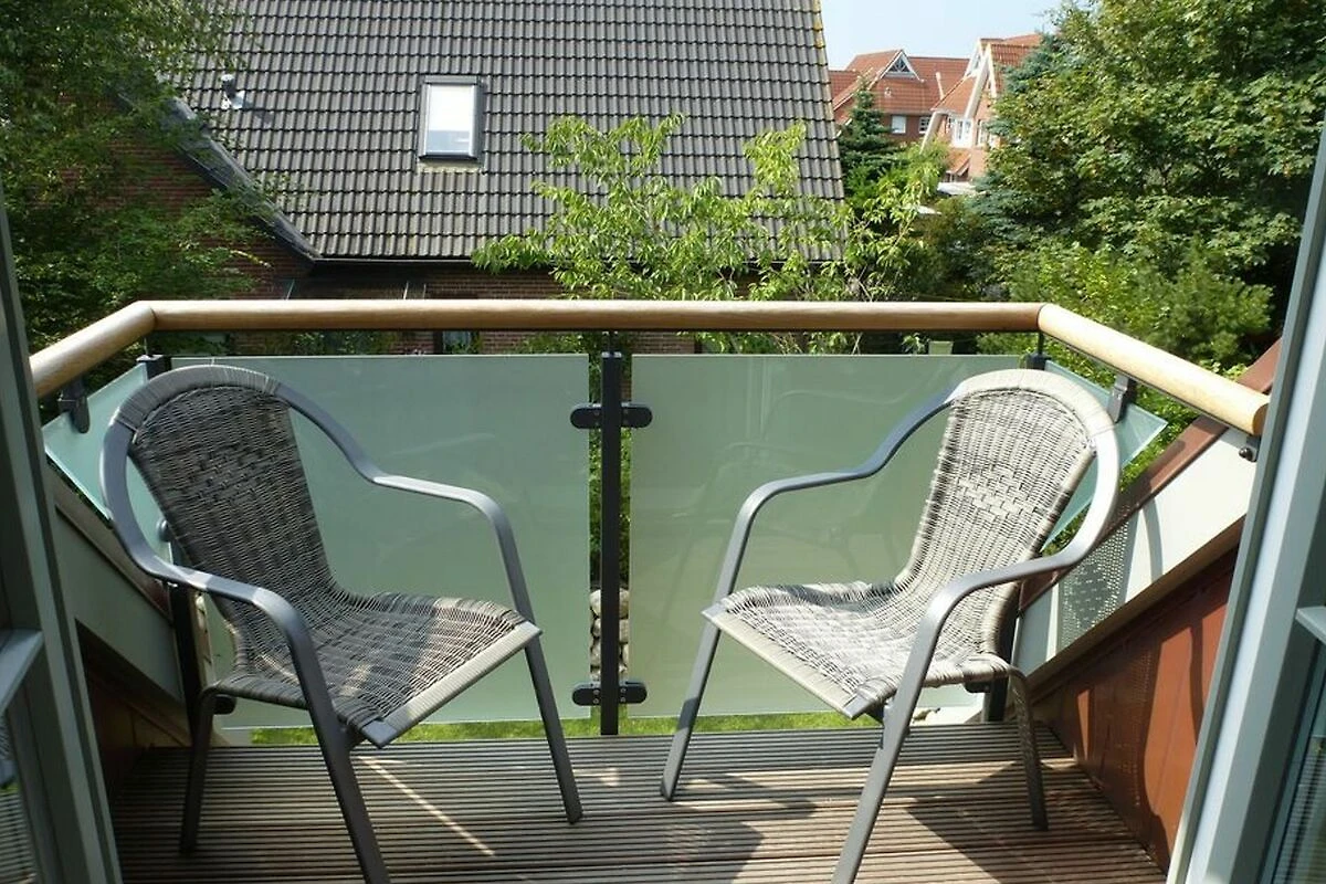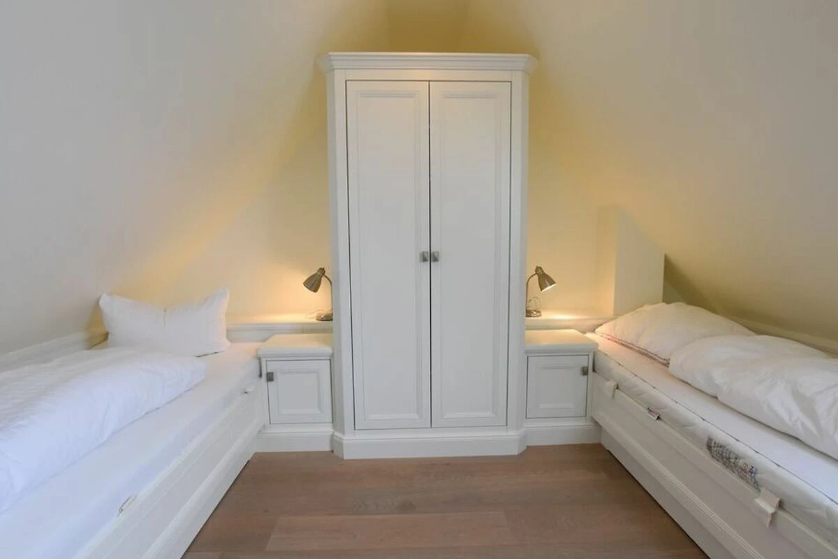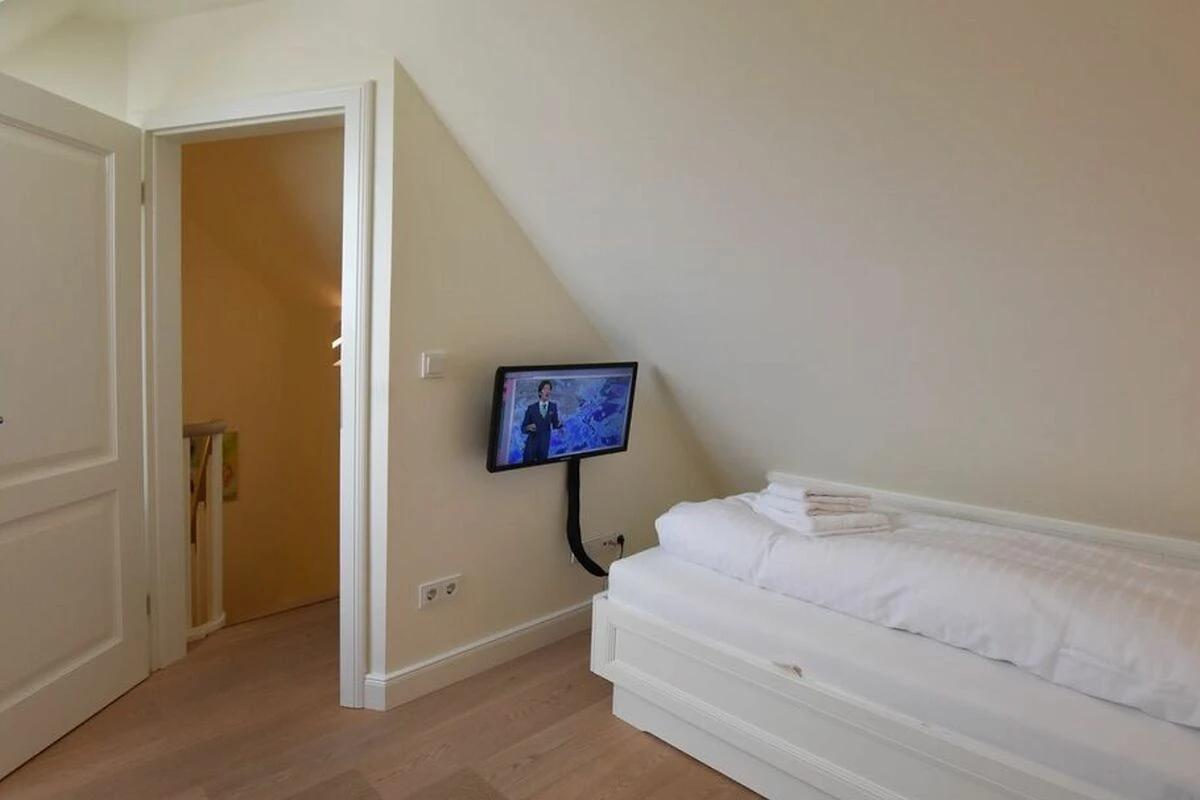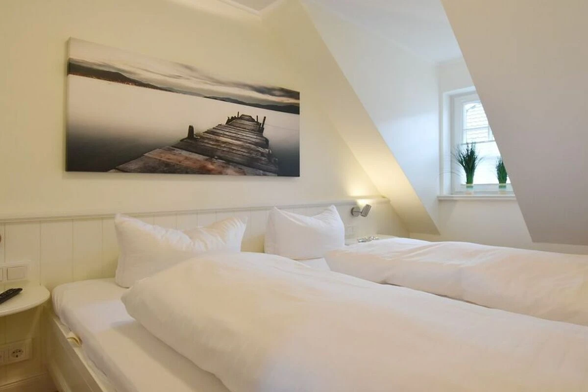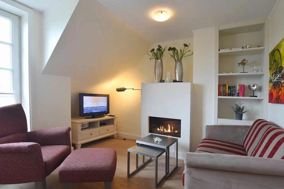 Exklusive 3-Zimmer-Ferienwohnung ( OG/SB ) im Norden Westerlands. Im OG steht Ihnen das Wohnzimmer mit offener integrierter Küche, Gas-Kaminofen, Westloggia, ein separates Schlafzimmer und ein Duschbad/WC zur Verfügung. Im Spitzboden befindet sich ein zusätzlicher Raum mit 2 Einzelbetten.