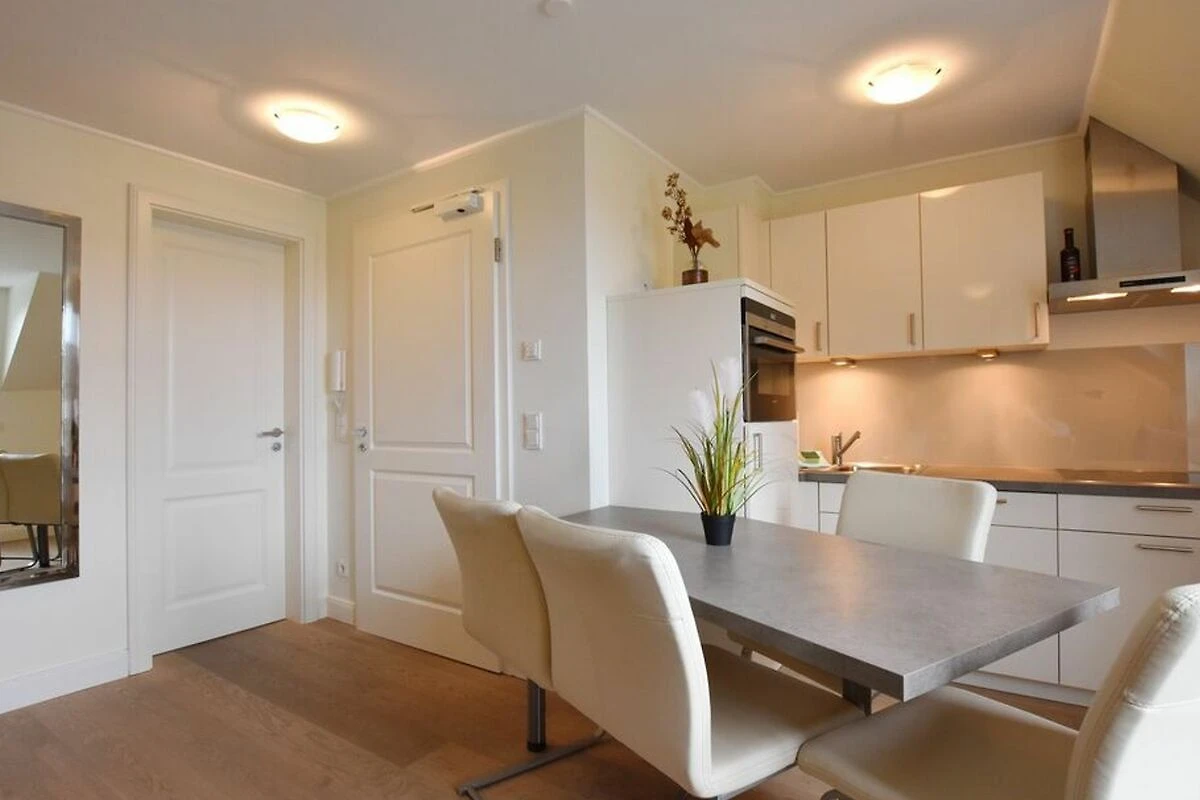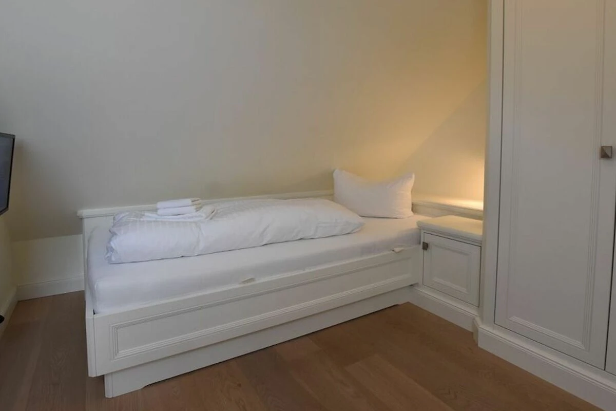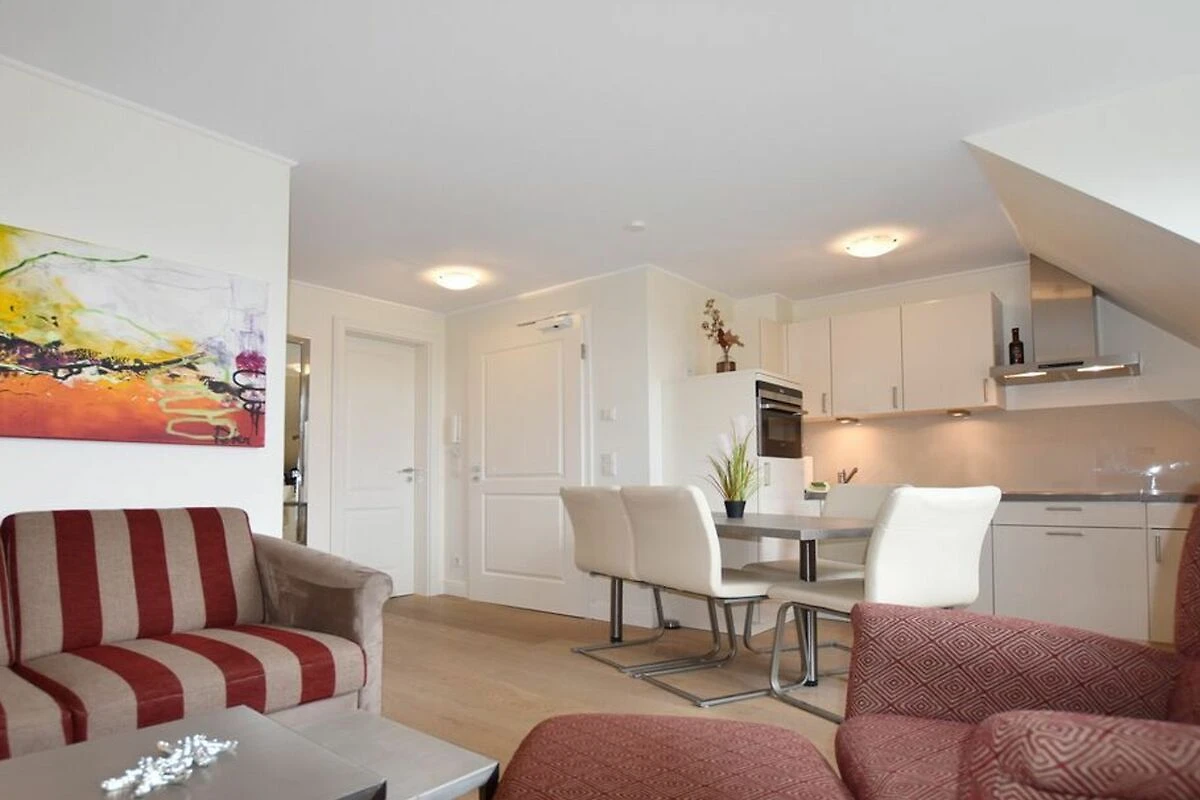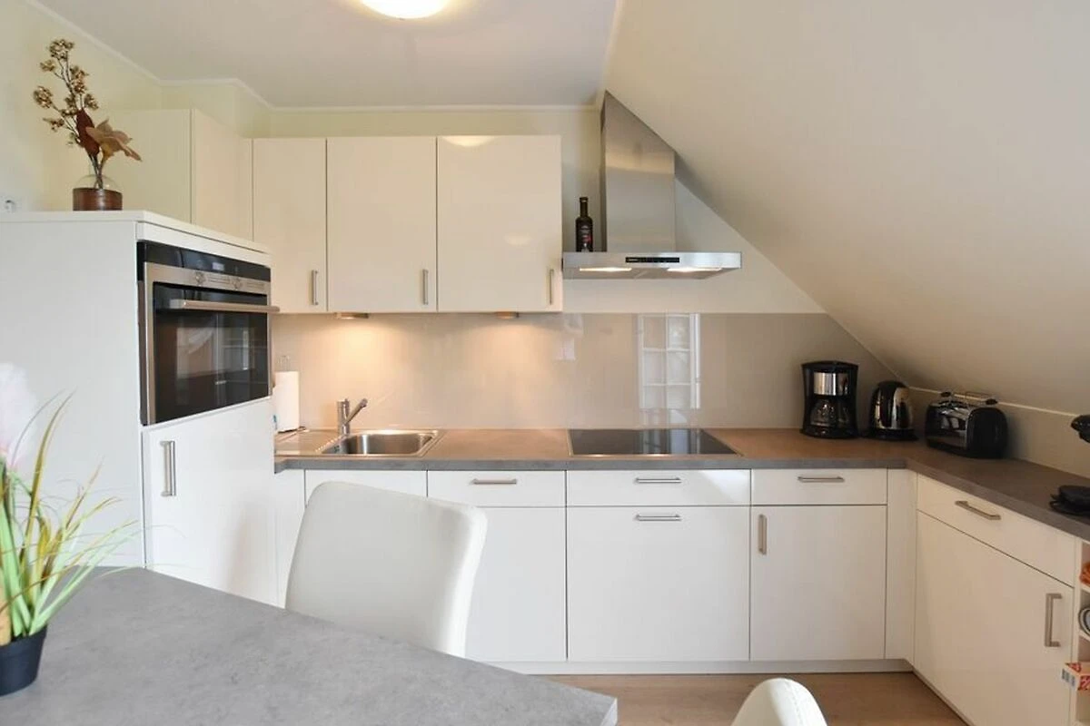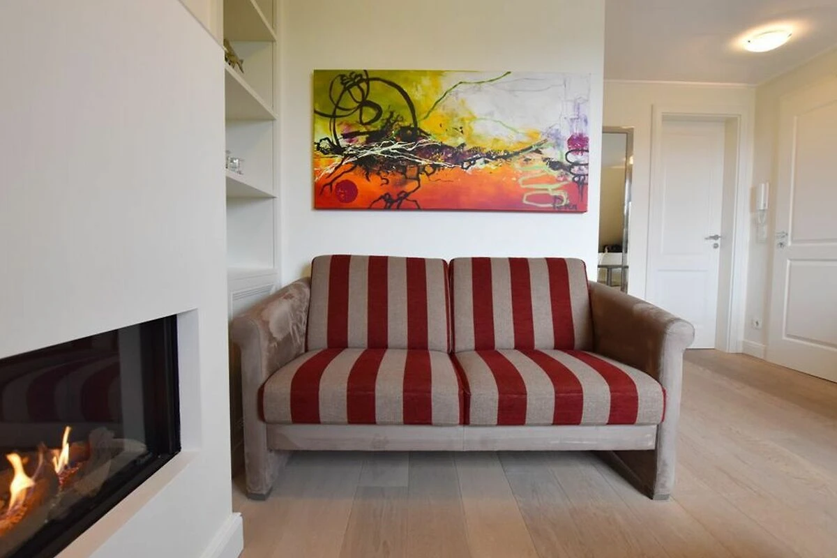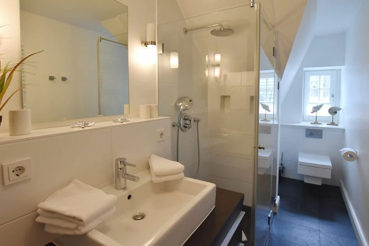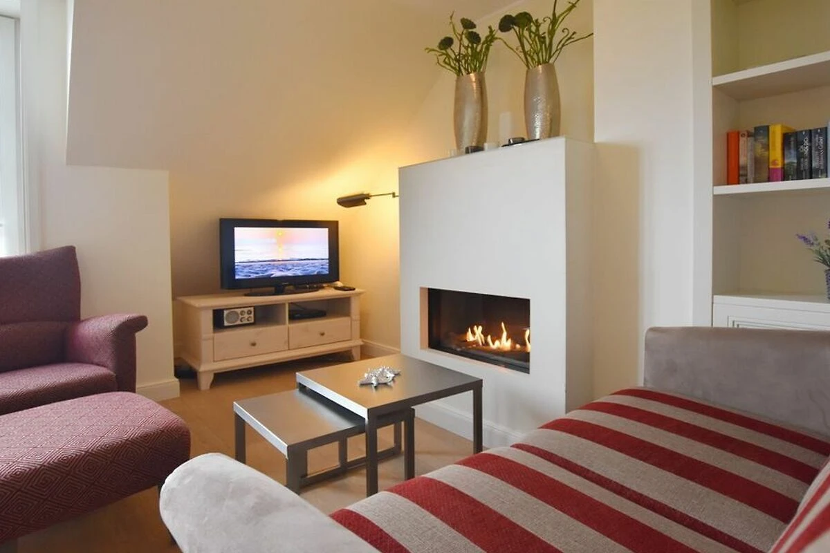 Exklusive 3-Zimmer-Ferienwohnung ( OG/SB ) im Norden Westerlands. Im OG steht Ihnen das Wohnzimmer mit offener integrierter Küche, Gas-Kaminofen, Westloggia, ein separates Schlafzimmer und ein Duschbad/WC zur Verfügung. Im Spitzboden befindet sich ein zusätzlicher Raum mit 2 Einzelbetten.