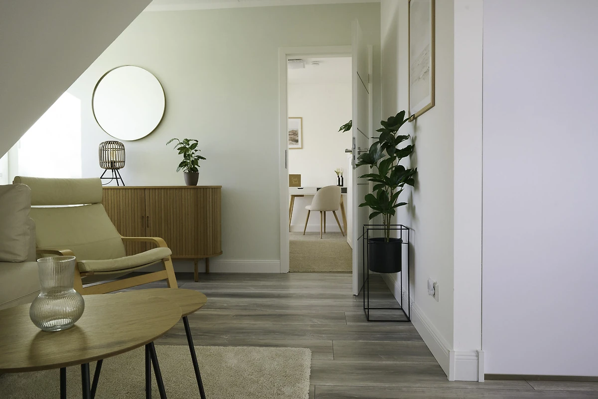 Im Badeort Börgerende zwischen Warnemünde und Kühlungsborn begrüsst Sie die romantische Ferienwohnung "Strand in Sicht". Eine 20 qm Dachterrasse bietet Ihnen einen atemberaubenden Blick über die Felder, aus der Ferne winkt das Meer. Die moderne und liebevoll eingerichtete Ferienwohnung ist unterteilt in ein Schlafzimmer mit Doppelbett und Schreibtisch fürs Homeoffice, einen grossen Wohnraum, sowie ein Badezimmer mit Dusche und WC. Der Wohnbereich bietet neben der offenen Küche mit grossem Essbereich, eine gemütliche Sofaecke sowie ein zusätzliches ausziehbares Doppelbett für zwei weitere Personen.
